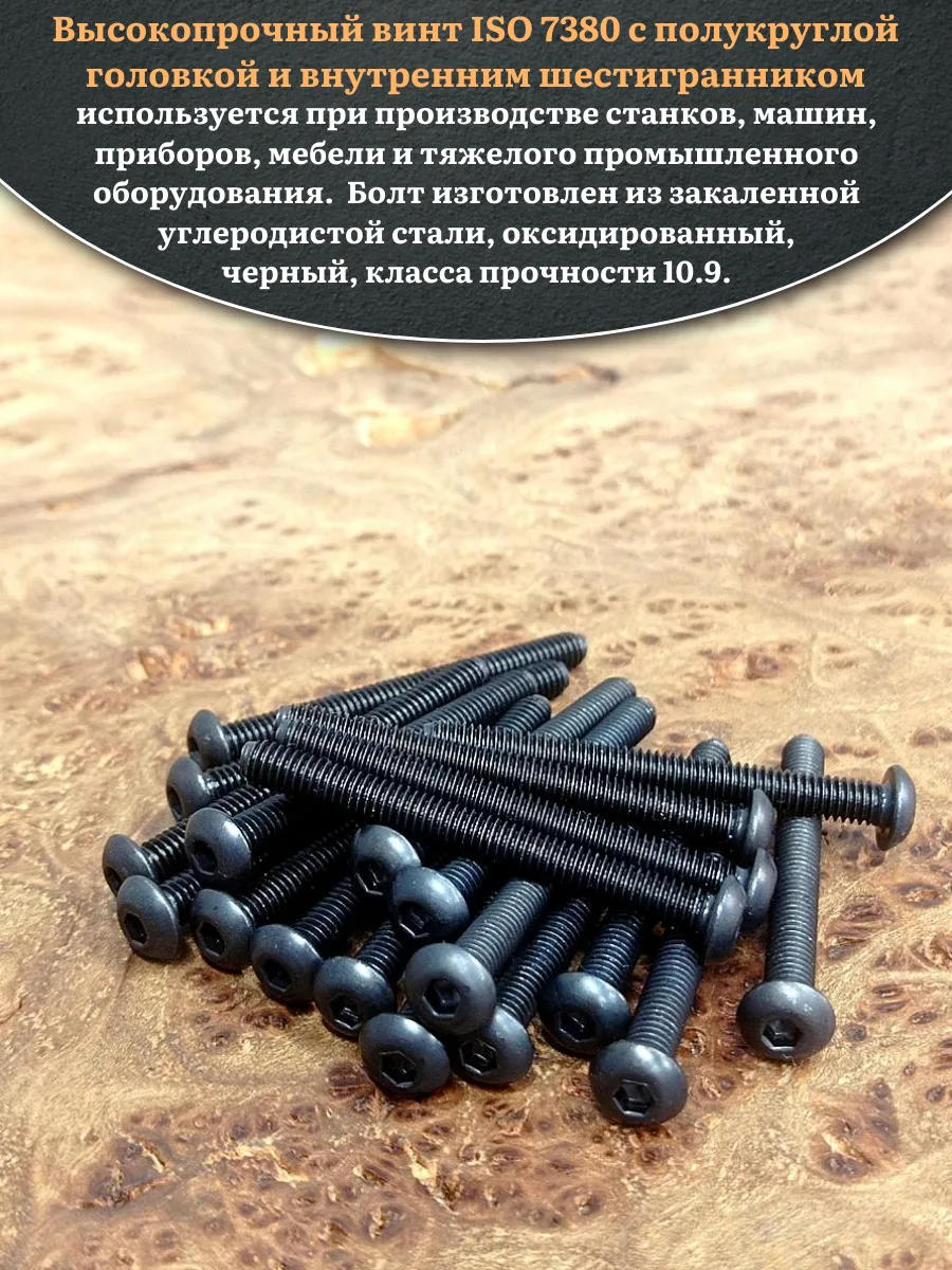 Винт чёрный М4х50 ISO 7380 под шестигранник к.п.10.9, 20 шт.