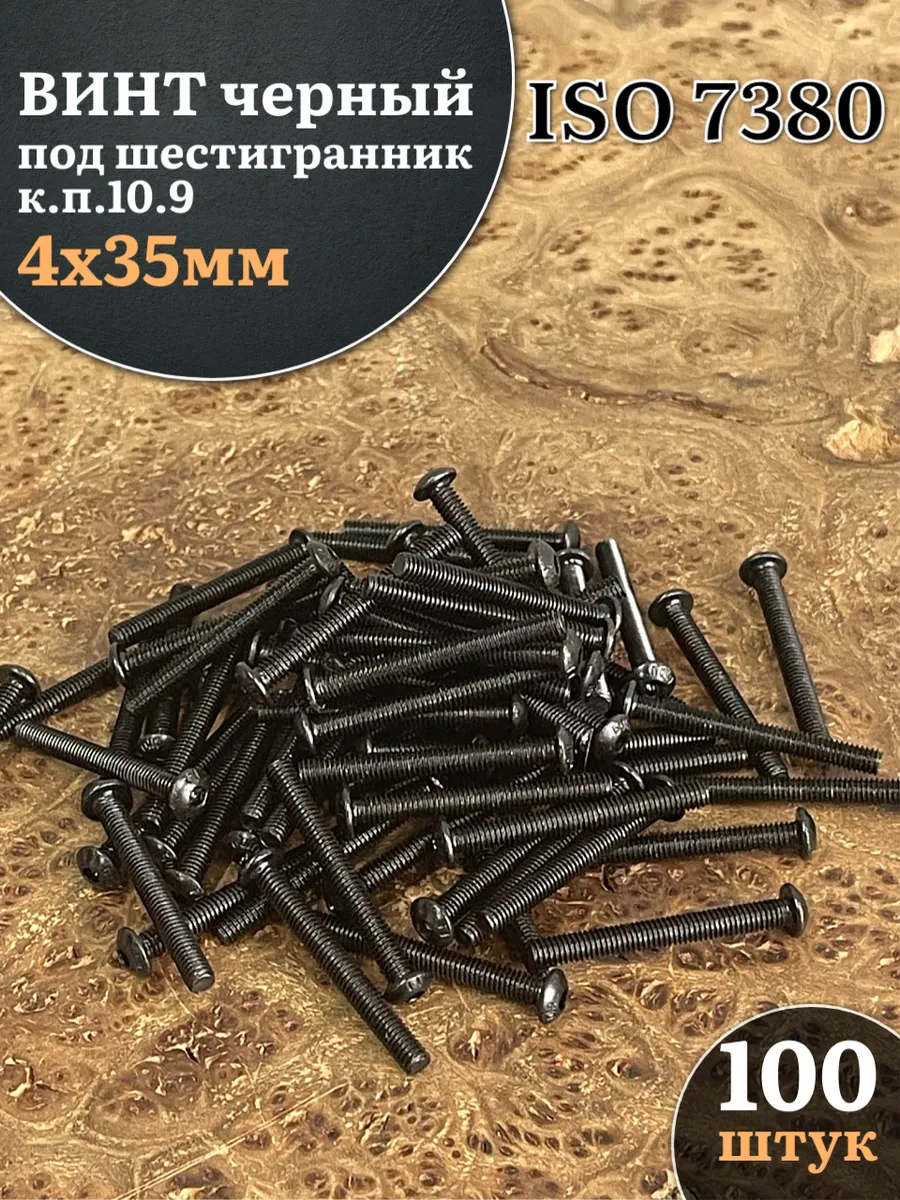 Винт чёрный М4x35 ISO 7380 под шестигранник к.п.10.9, 100 шт.