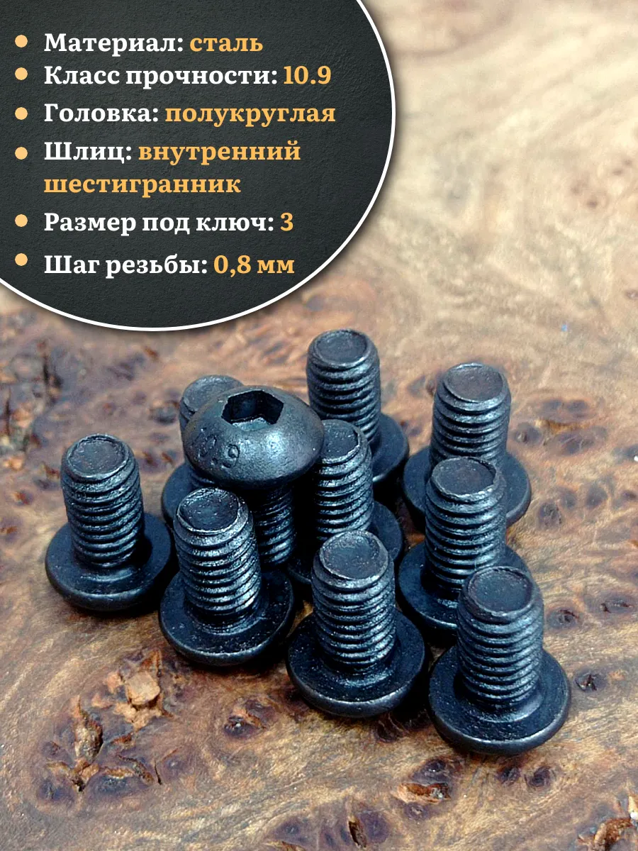 | Винт чёрный М5х12 ISO 7380 под шестигранник к.п.10.9, 10 шт. | 00-00001072ф10 | 1 шт. |