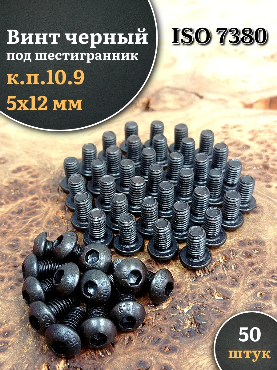 Винт чёрный М5х12 ISO 7380 под шестигранник к.п.10.9, 50 шт.