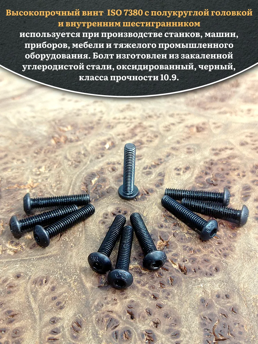 Винт чёрный М5х20 ISO 7380 под шестигранник к.п.10.9, 20 шт.