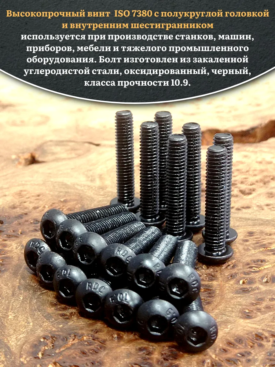 Винт чёрный М5х30 ISO 7380 под шестигранник к.п.10.9, 20 шт.