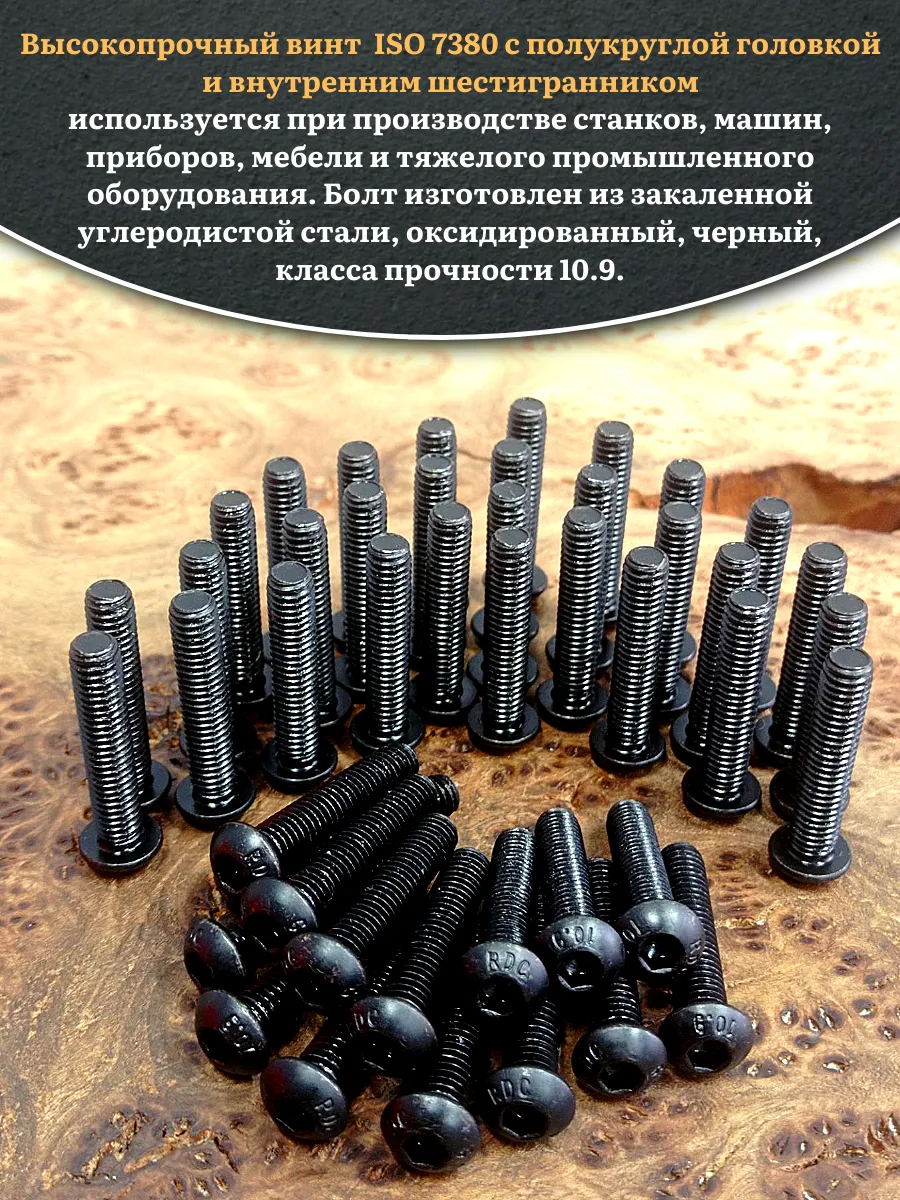 Винт чёрный М5х30 ISO 7380 под шестигранник к.п.10.9, 50 шт.