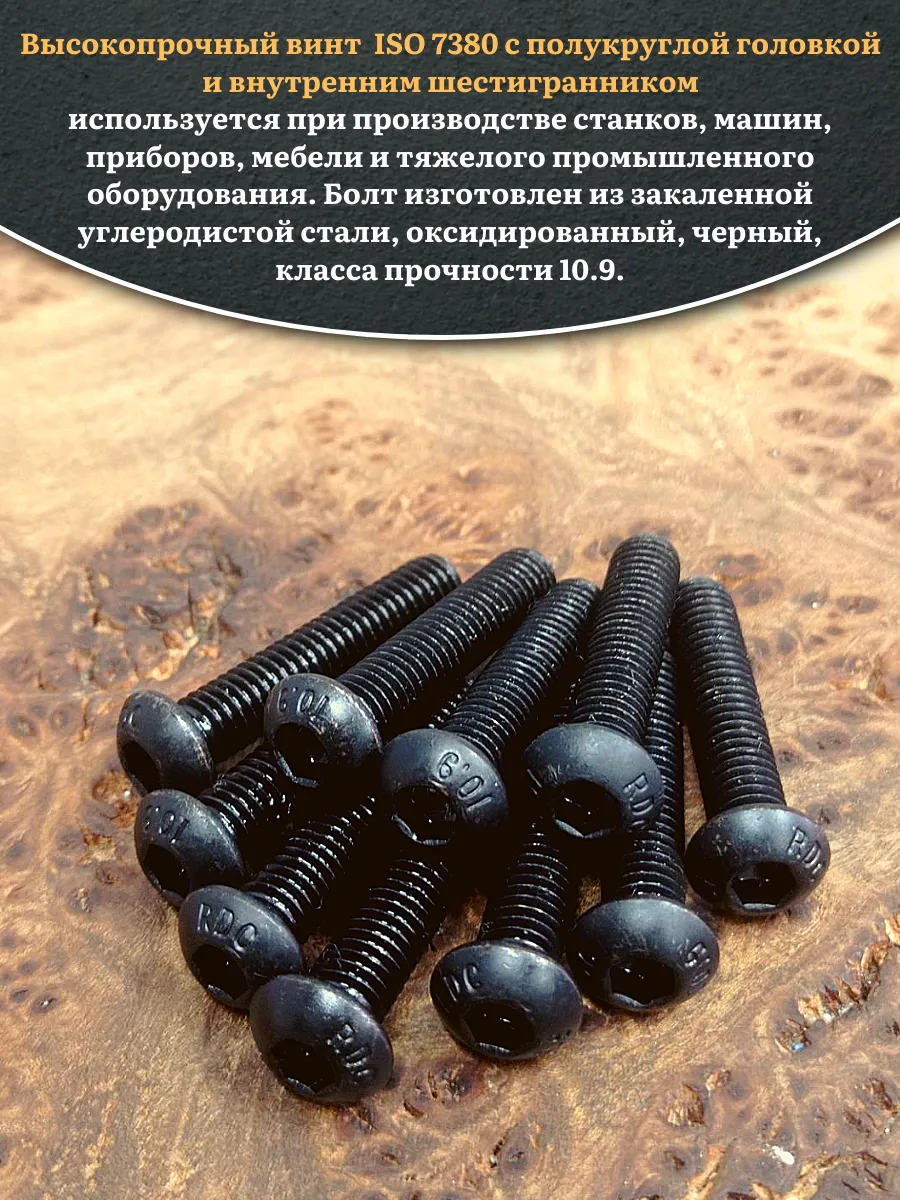 Винт чёрный М5х35 ISO 7380 под шестигранник к.п.10.9, 10 шт.