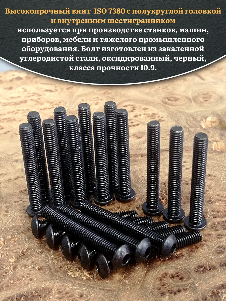 Винт чёрный М5х40 ISO 7380 под шестигранник к.п.10.9, 50 шт.