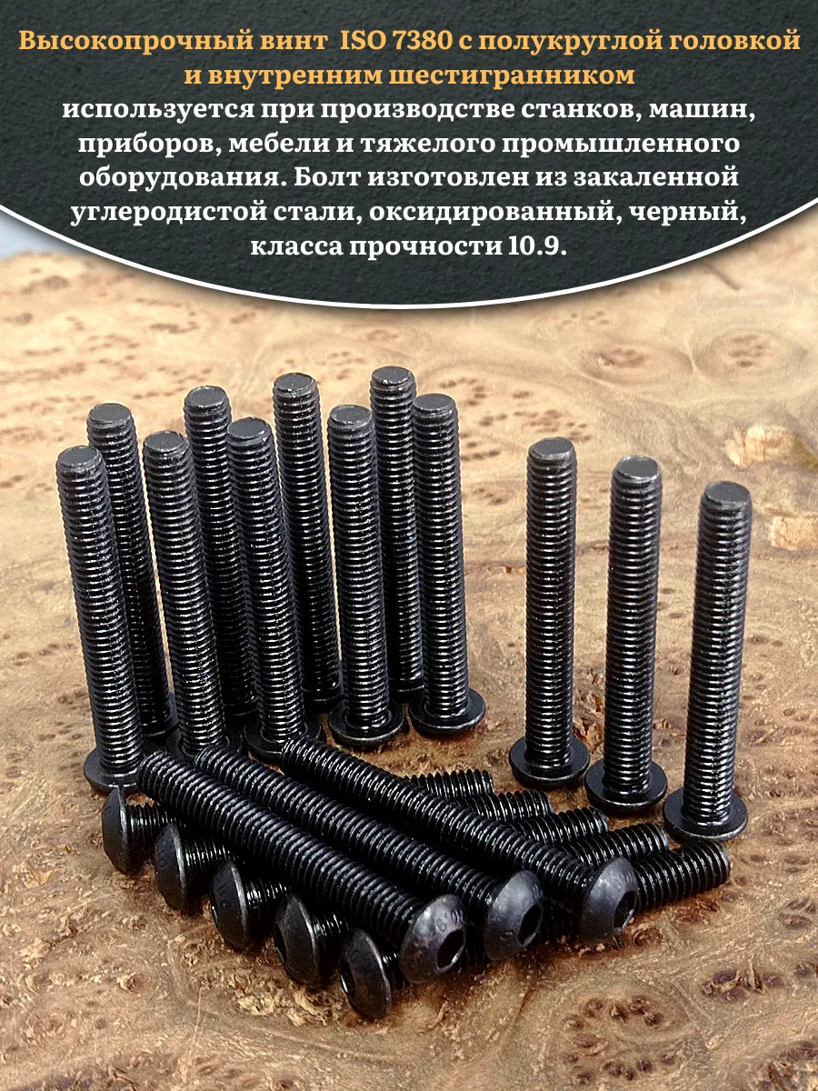 Винт чёрный М5х50 ISO 7380 под шестигранник к.п.10.9, 50 шт.
