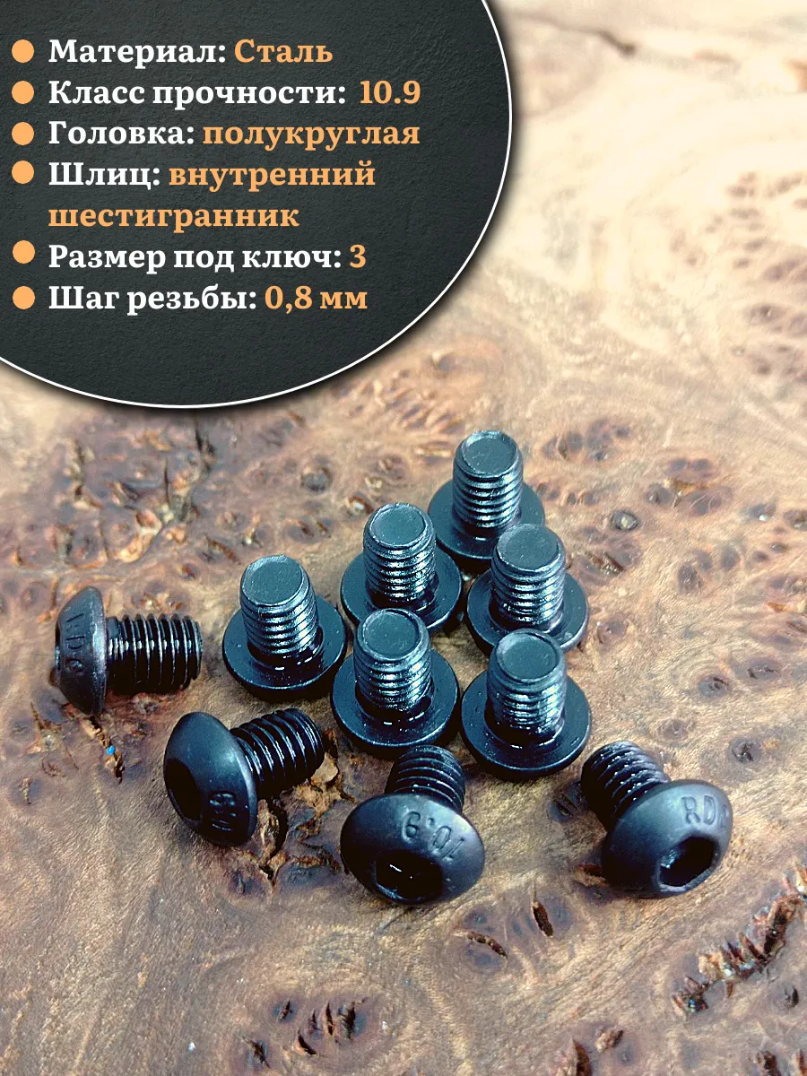 | Винт чёрный М5х6 ISO 7380 под шестигранник к.п.10.9, 100 шт. | 00-00003823ф100 | 1 шт. |
