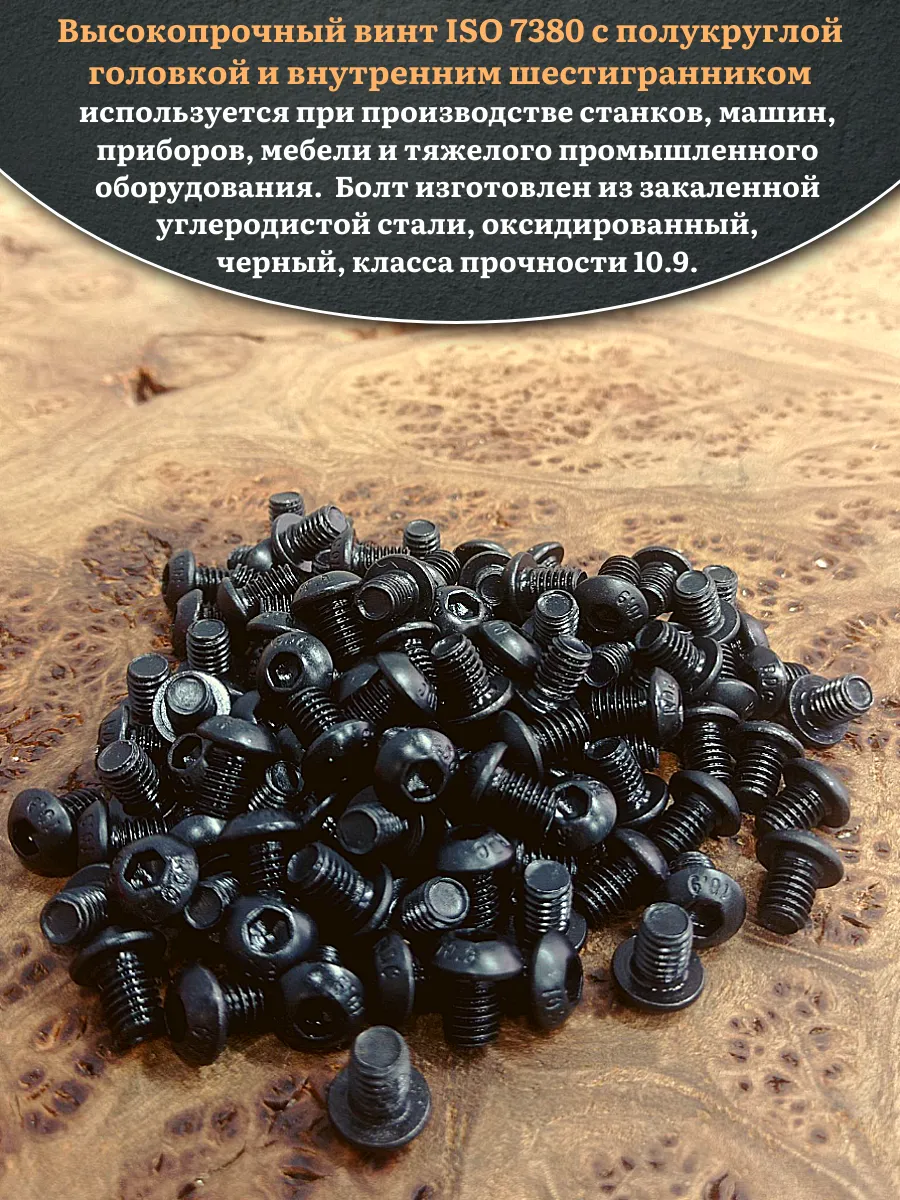Винт чёрный М5х6 ISO 7380 под шестигранник к.п.10.9, 100 шт.