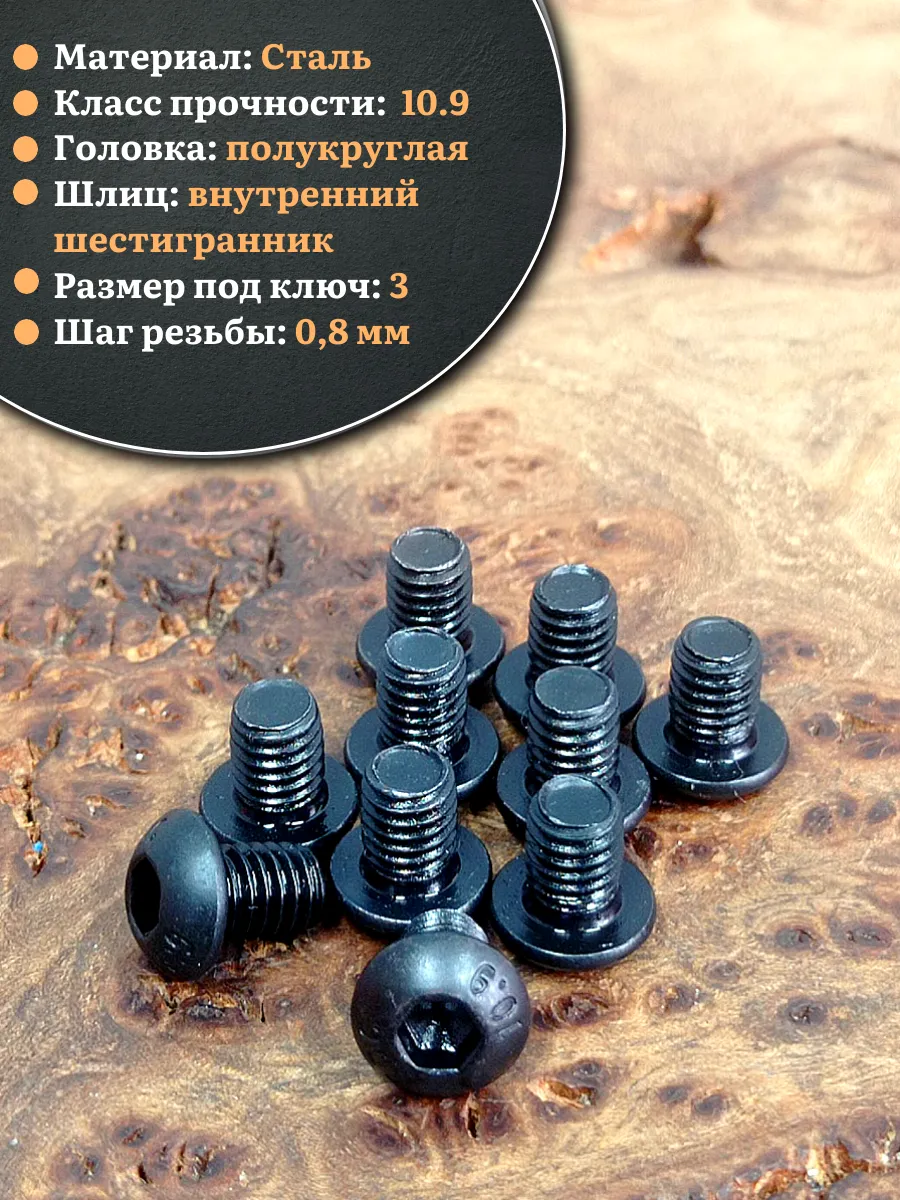 | Винт чёрный М5х6 ISO 7380 под шестигранник к.п.10.9, 10 шт. | 00-00003823ф10 | 1 шт. |