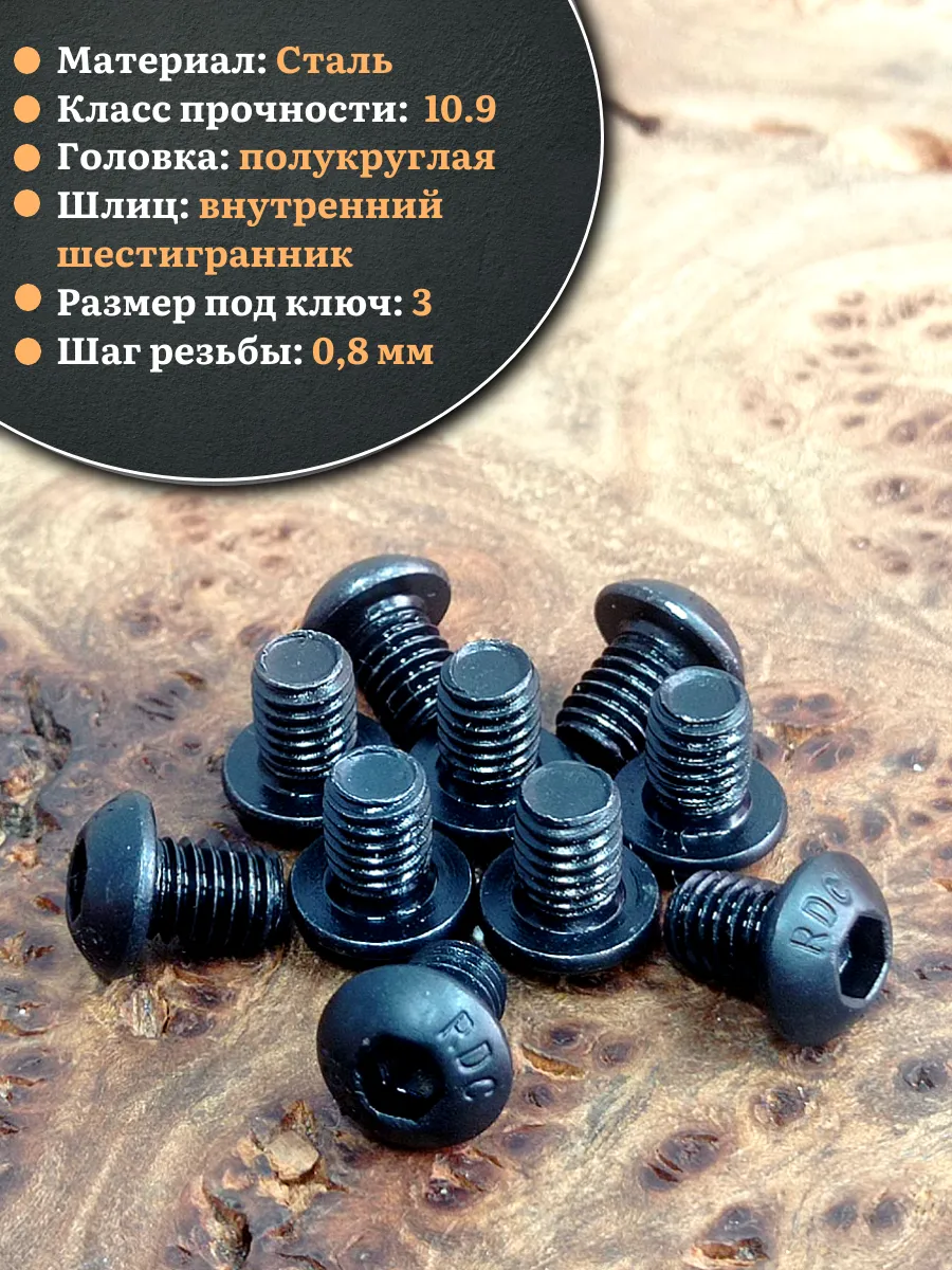 | Винт чёрный М5х8 ISO 7380 под шестигранник к.п.10.9, 50 шт. | 00-00002366ф50 | 1 шт. |