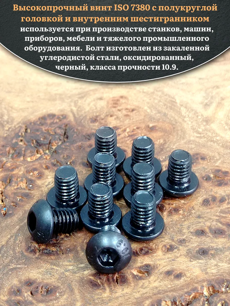 Винт чёрный М5х8 ISO 7380 под шестигранник к.п.10.9, 10 шт.