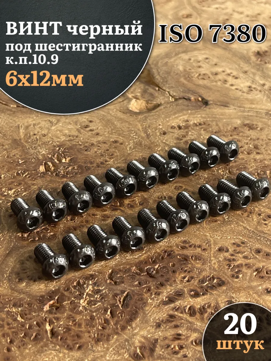 Винт чёрный М6х12 ISO 7380 под шестигранник к.п.10.9, 20 шт.