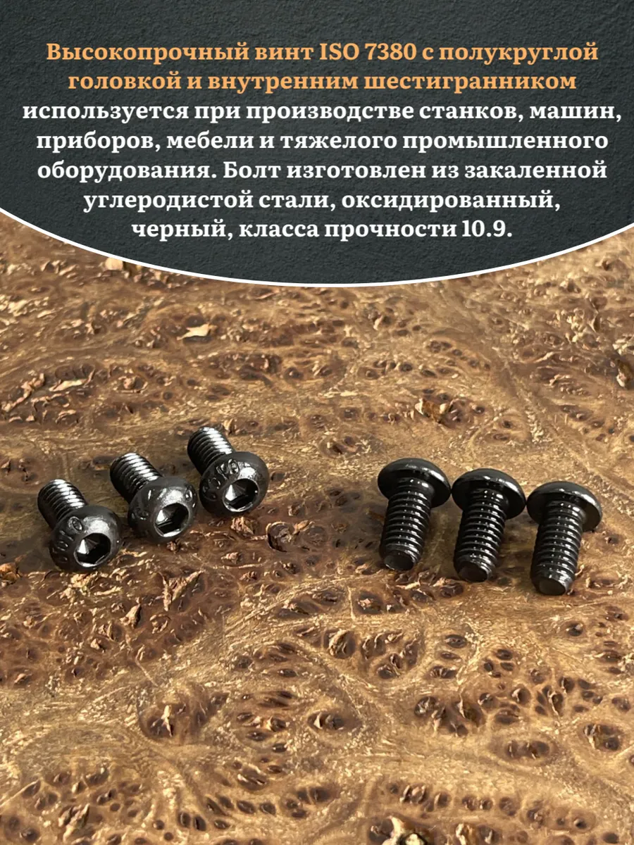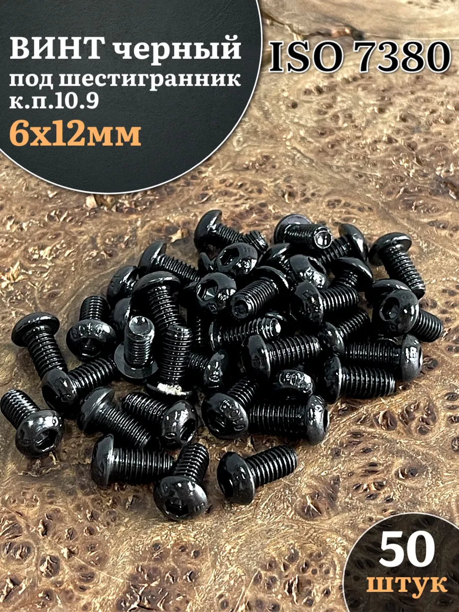 Винт чёрный М6х12 ISO 7380 под шестигранник к.п.10.9, 50 шт.
