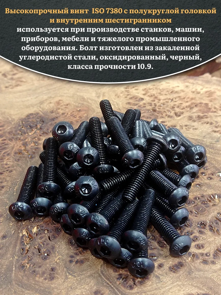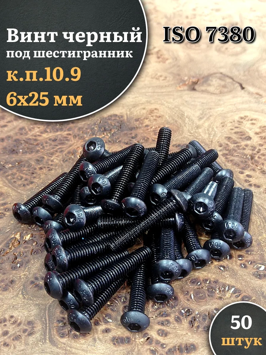 Винт чёрный М6х25 ISO 7380 под шестигранник к.п.10.9, 50 шт.
