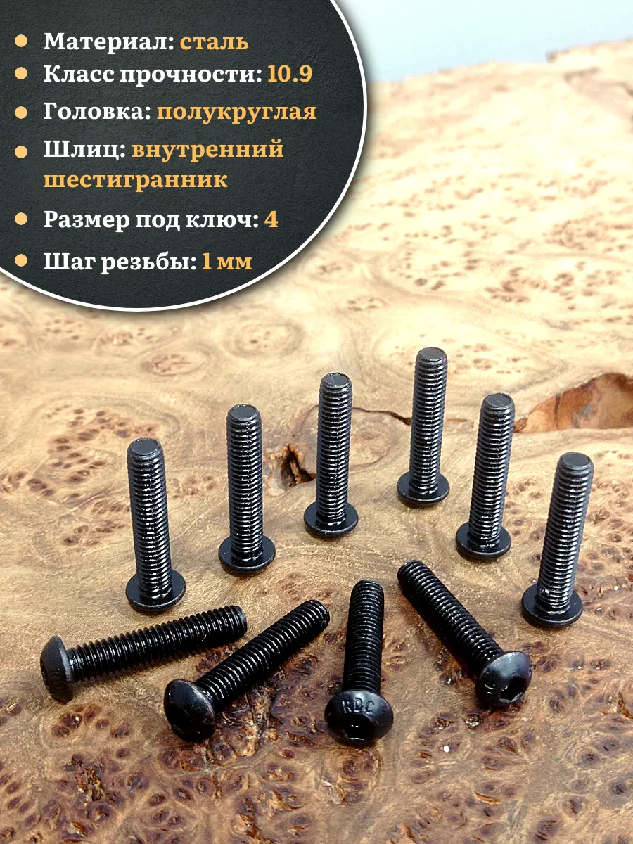 | Винт чёрный М6х30 ISO 7380 под шестигранник к.п.10.9, 10 шт. | 00-00000524ф10 | 1 шт. |