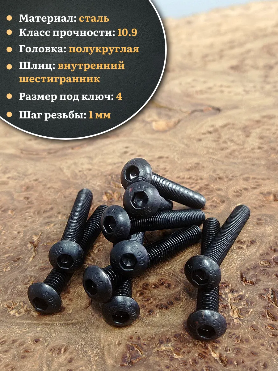 Винт чёрный М6х40 ISO 7380 под шестигранник к.п.10.9, 10 шт.