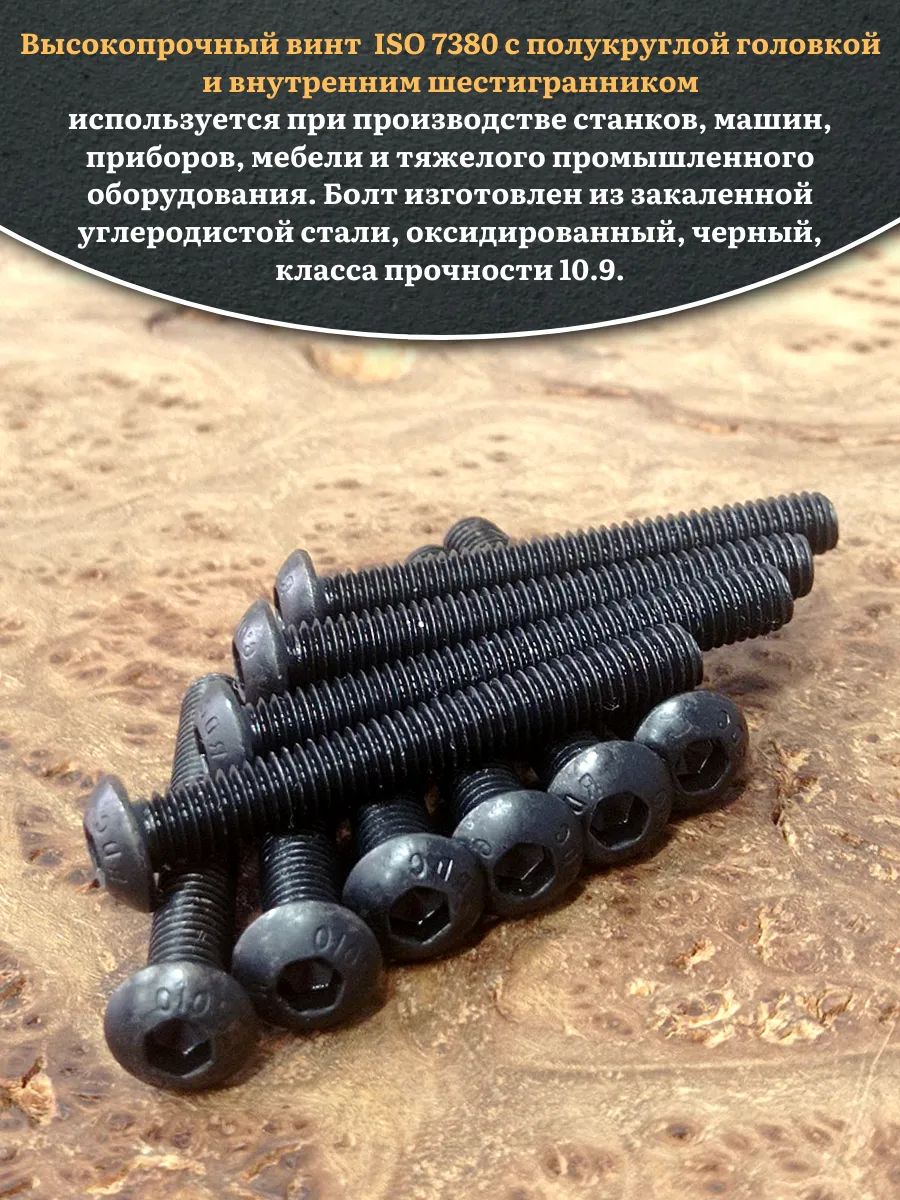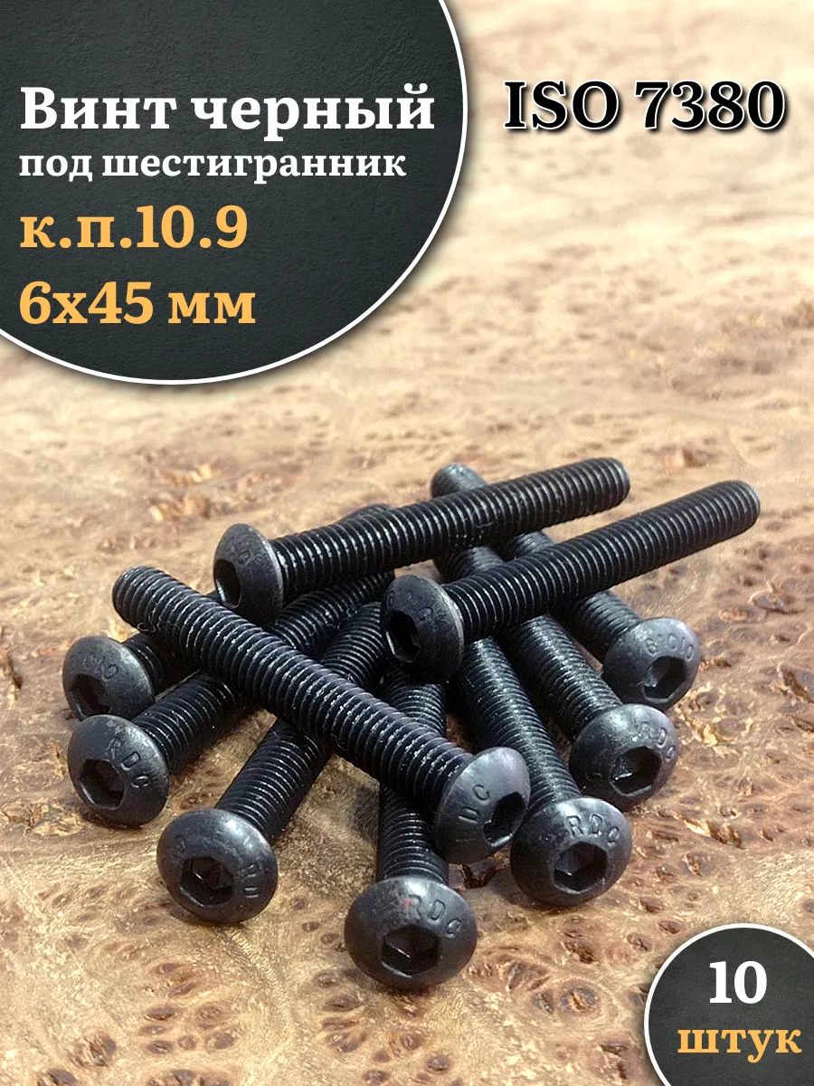 Винт чёрный М6х45 ISO 7380 под шестигранник к.п.10.9, 10 шт.