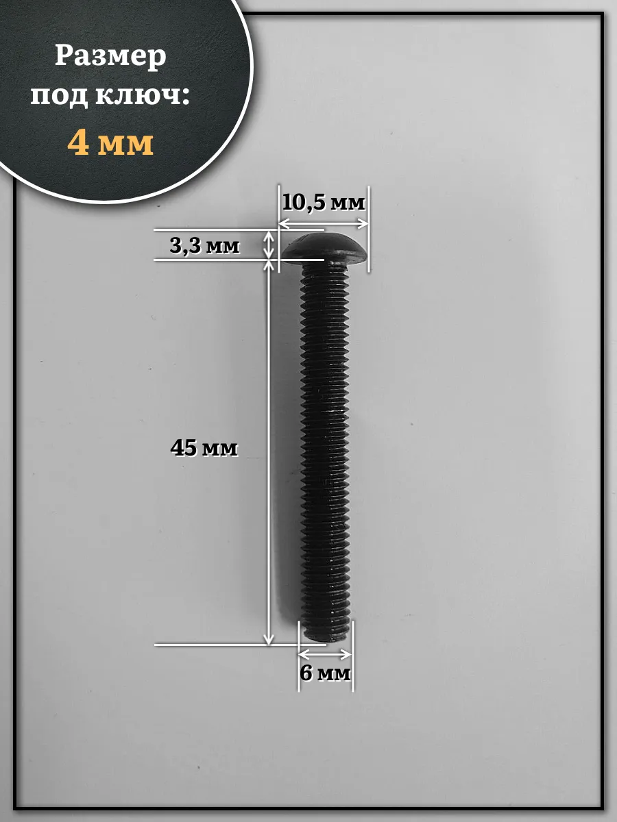 | Винт чёрный М6х45 ISO 7380 под шестигранник к.п.10.9, 20 шт. | 00-00004813ф20 | 1 шт. |