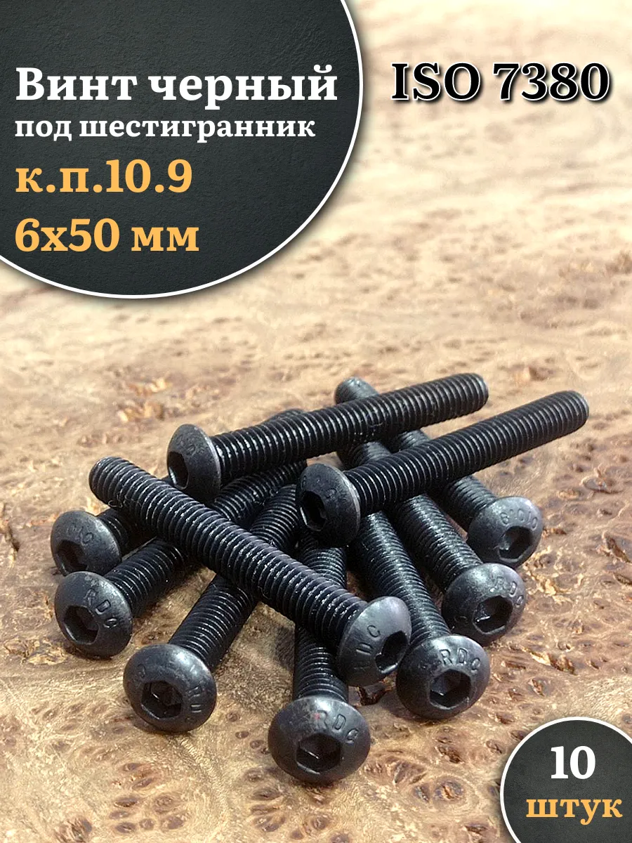 Винт чёрный М6х50 ISO 7380 под шестигранник к.п.10.9, 10 шт.