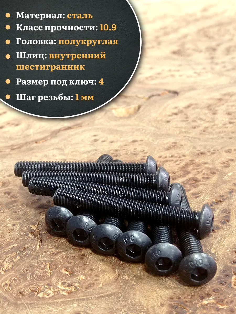 | Винт чёрный М6х50 ISO 7380 под шестигранник к.п.10.9, 20 шт. | 00-00000106ф20 | 1 шт. |