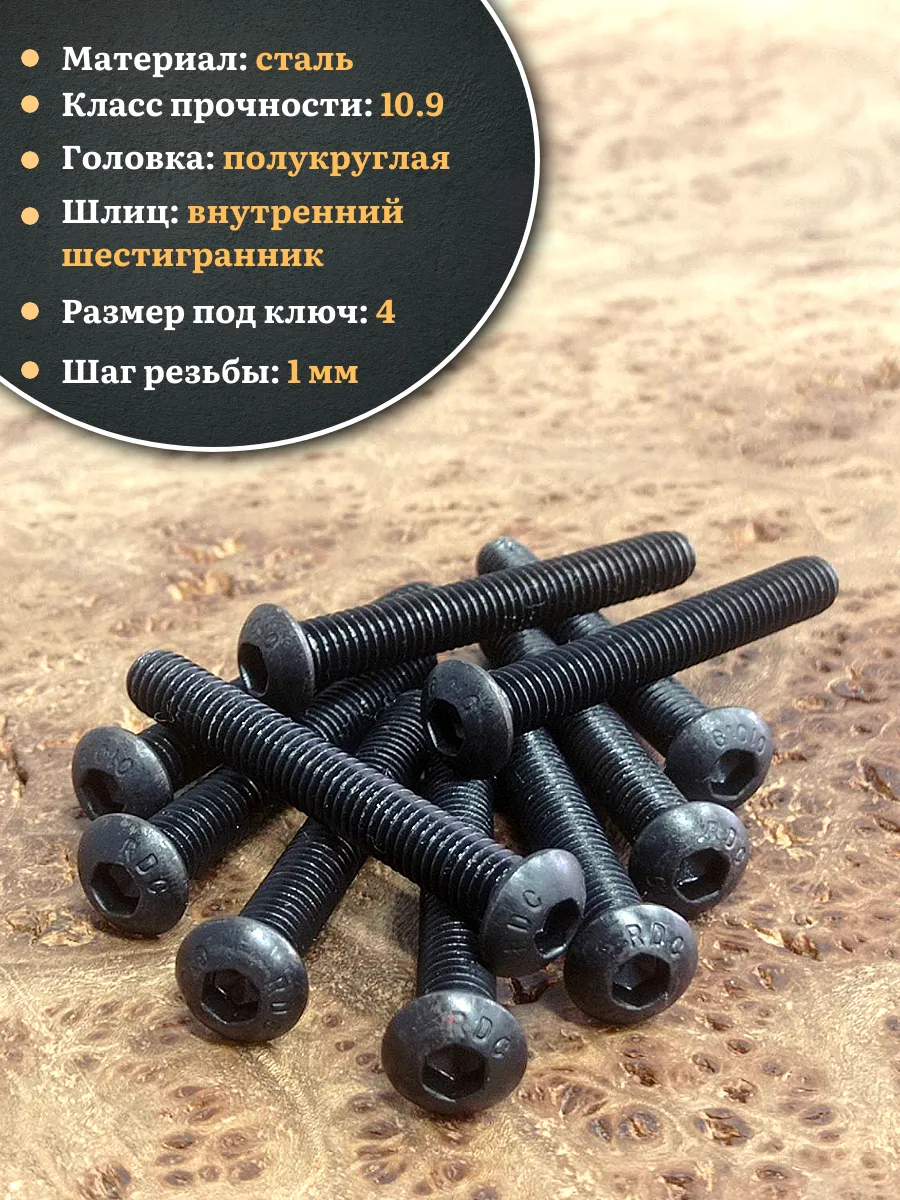 Винт чёрный М6х50 ISO 7380 под шестигранник к.п.10.9, 50 шт.