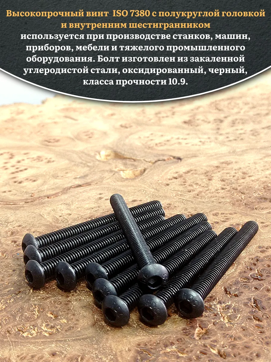 Винт чёрный М6х55 ISO 7380 под шестигранник к.п.10.9, 10 шт.