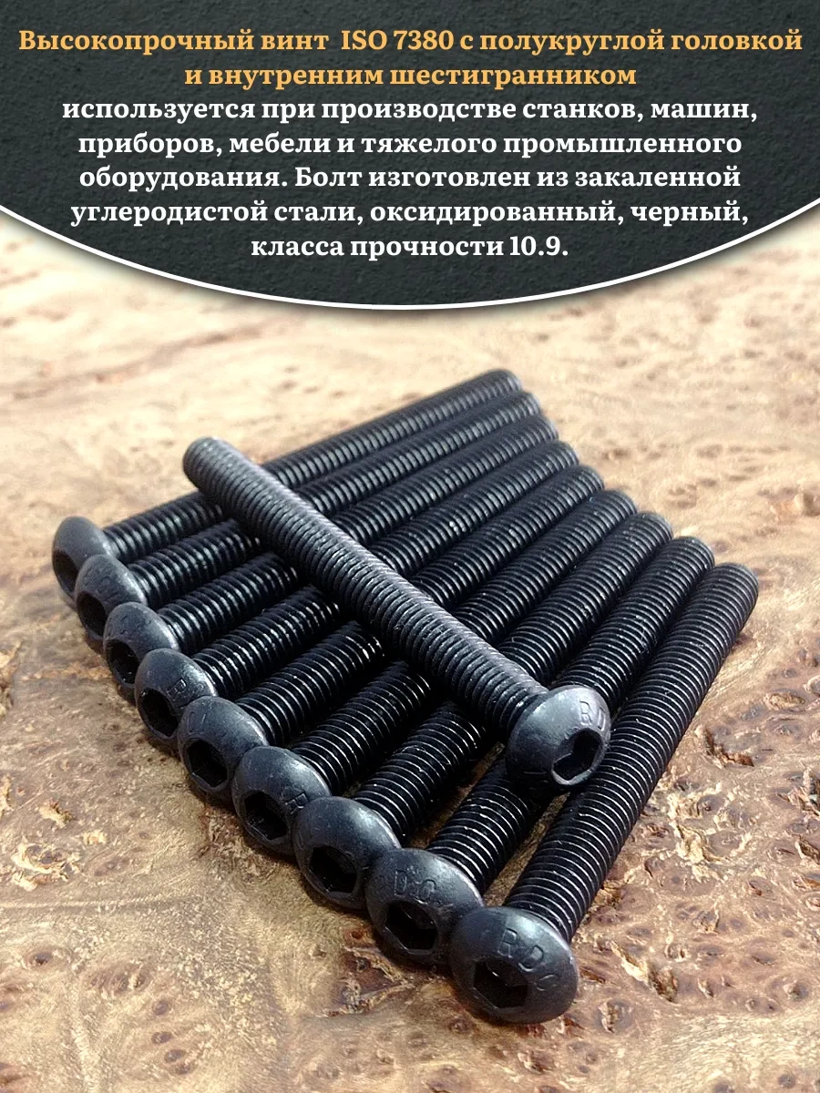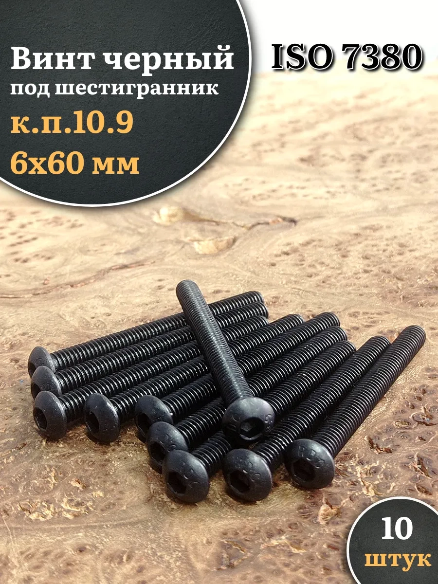 Винт чёрный М6х60 ISO 7380 под шестигранник к.п.10.9, 10 шт.