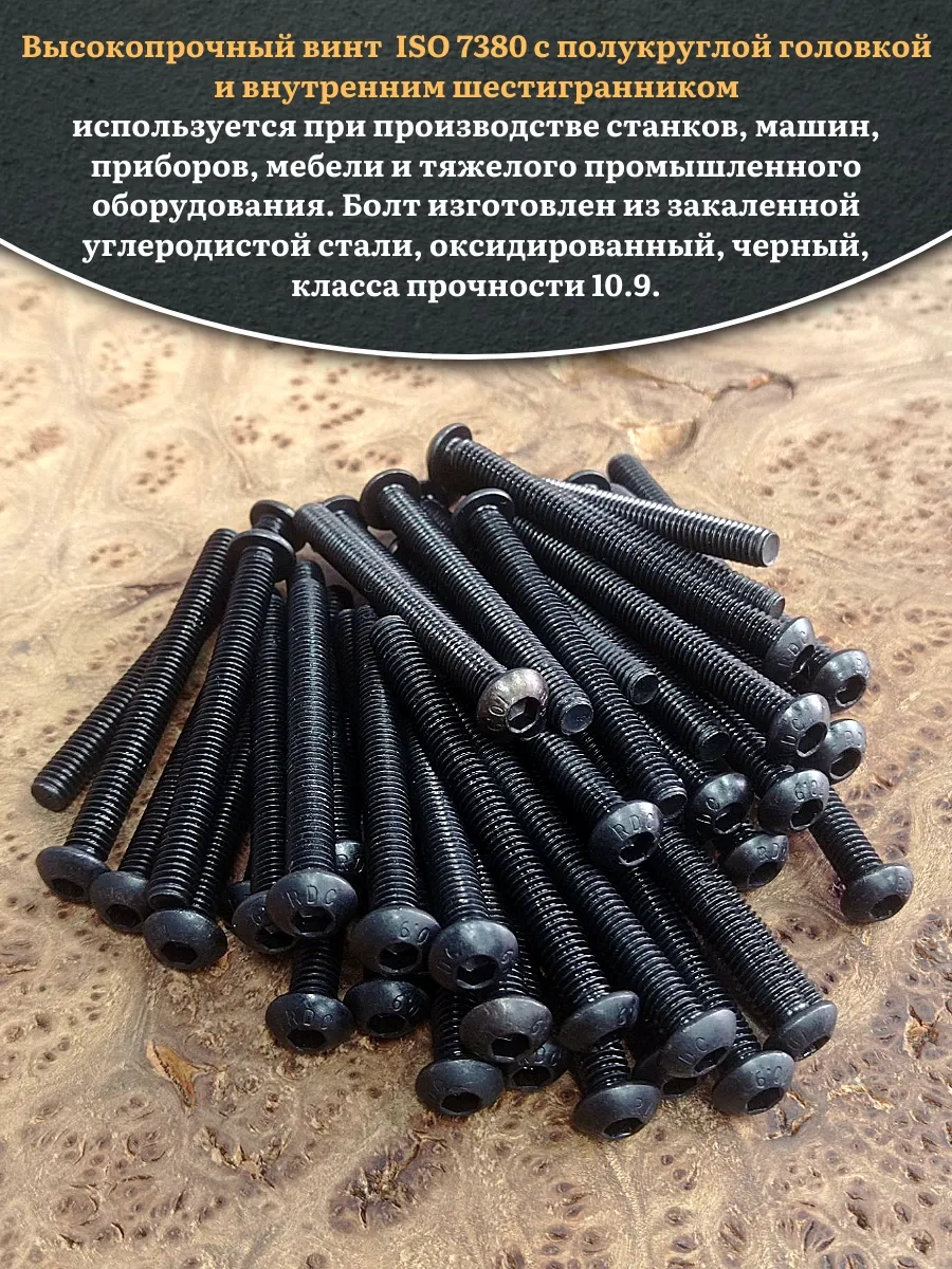 Винт чёрный М6х60 ISO 7380 под шестигранник к.п.10.9, 100 шт.