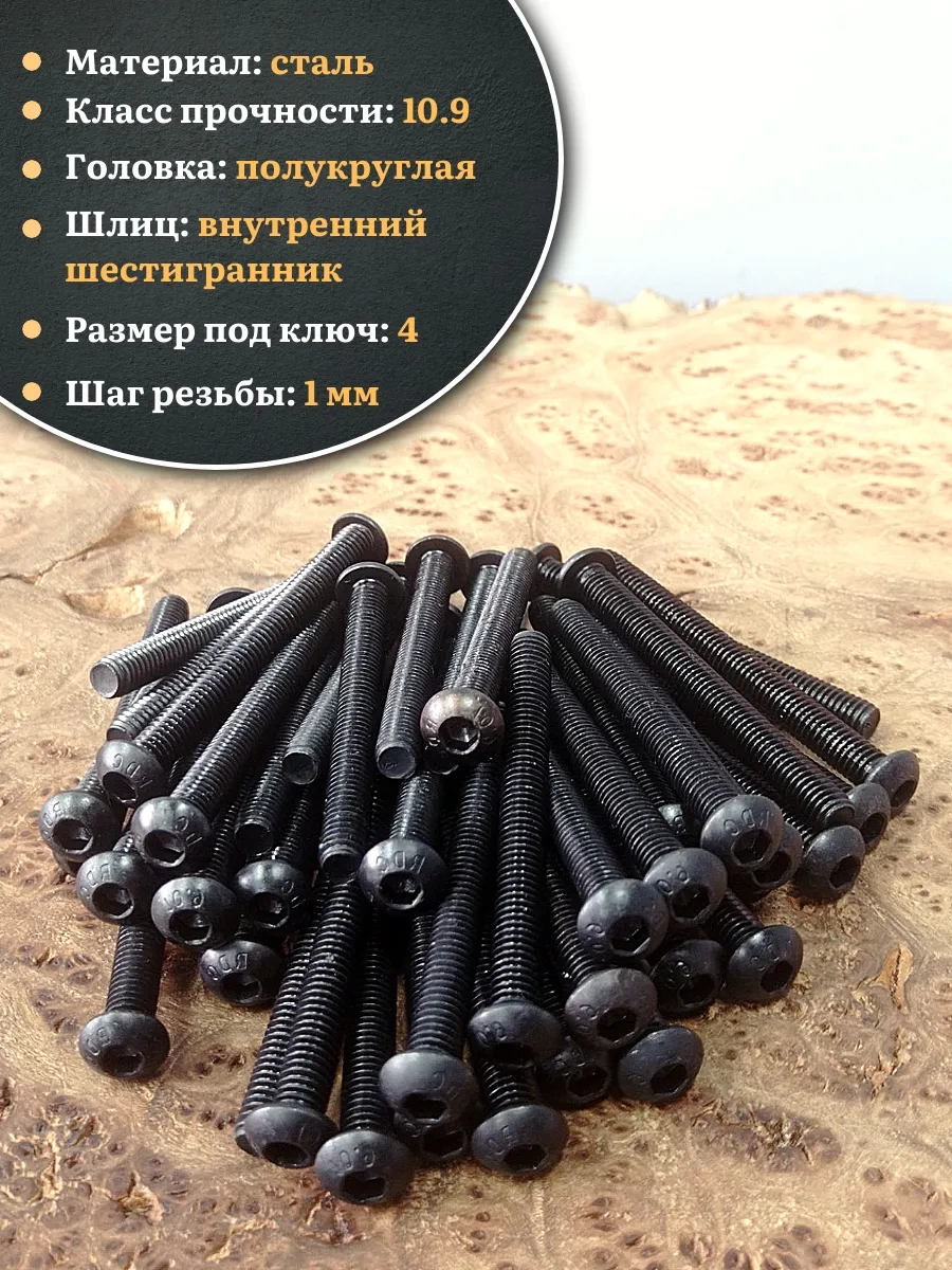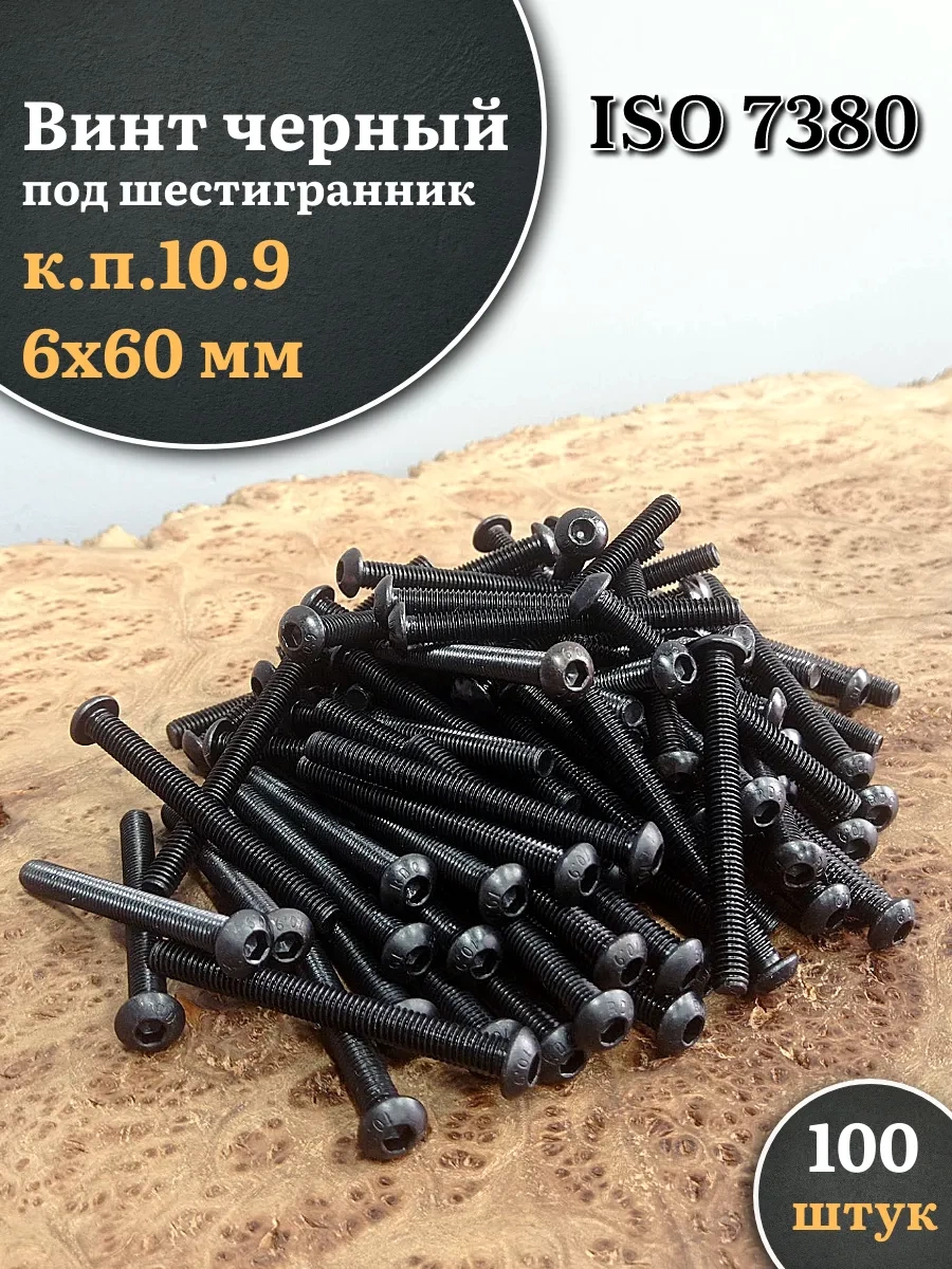| Винт чёрный М6х60 ISO 7380 под шестигранник к.п.10.9, 50 шт. | 00-00006265ф50 | 1 шт. |