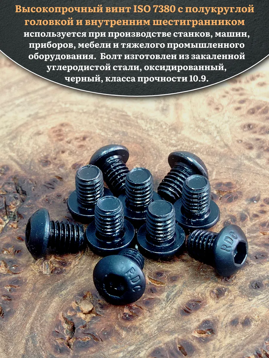 Винт чёрный М6х8 ISO 7380 под шестигранник к.п.10.9, 10 шт.