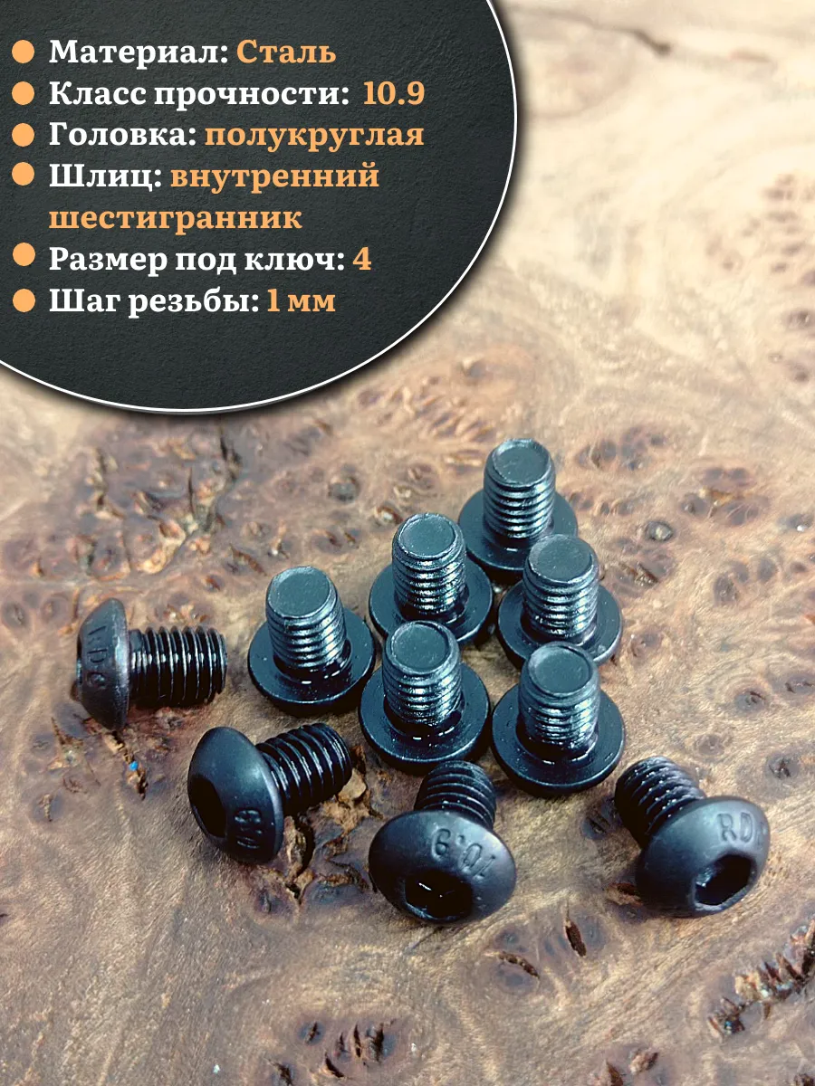 | Винт чёрный М6х8 ISO 7380 под шестигранник к.п.10.9, 50 шт. | 00-00003385ф50 | 1 шт. |
