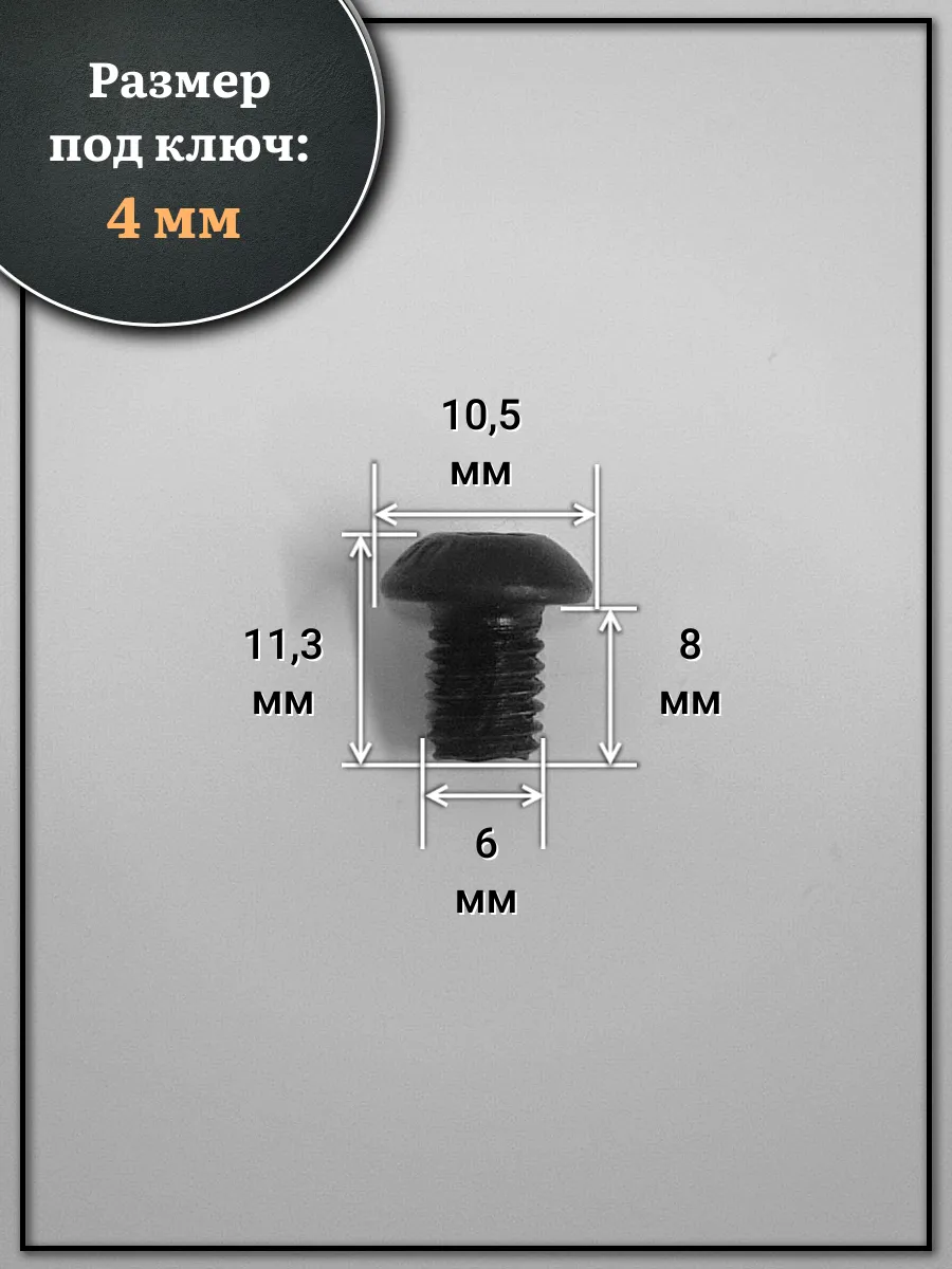 | Винт чёрный М6х8 ISO 7380 под шестигранник к.п.10.9, 10 шт. | 00-00003385ф10 | 1 шт. |