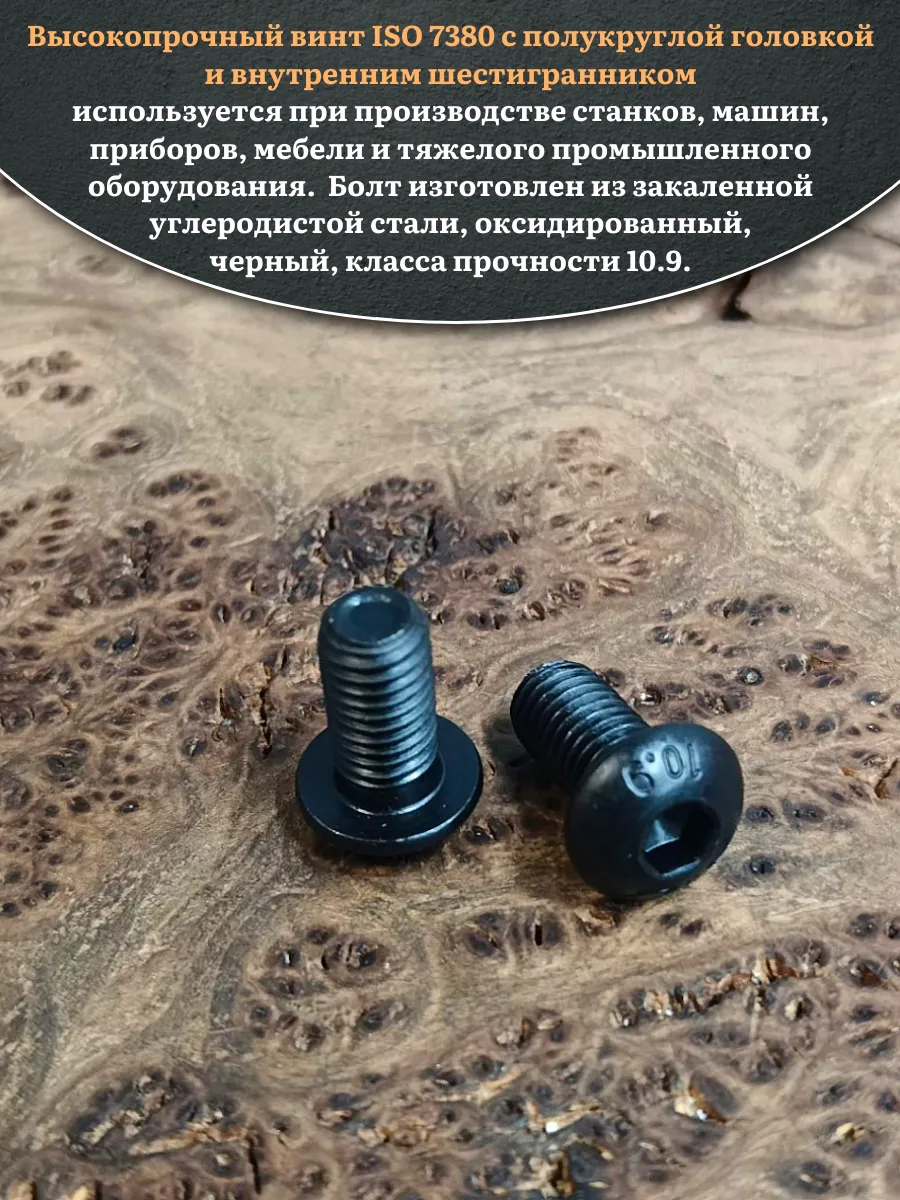 Винт чёрный М8х10 ISO 7380 под шестигранник к.п.10.9, 10 шт.