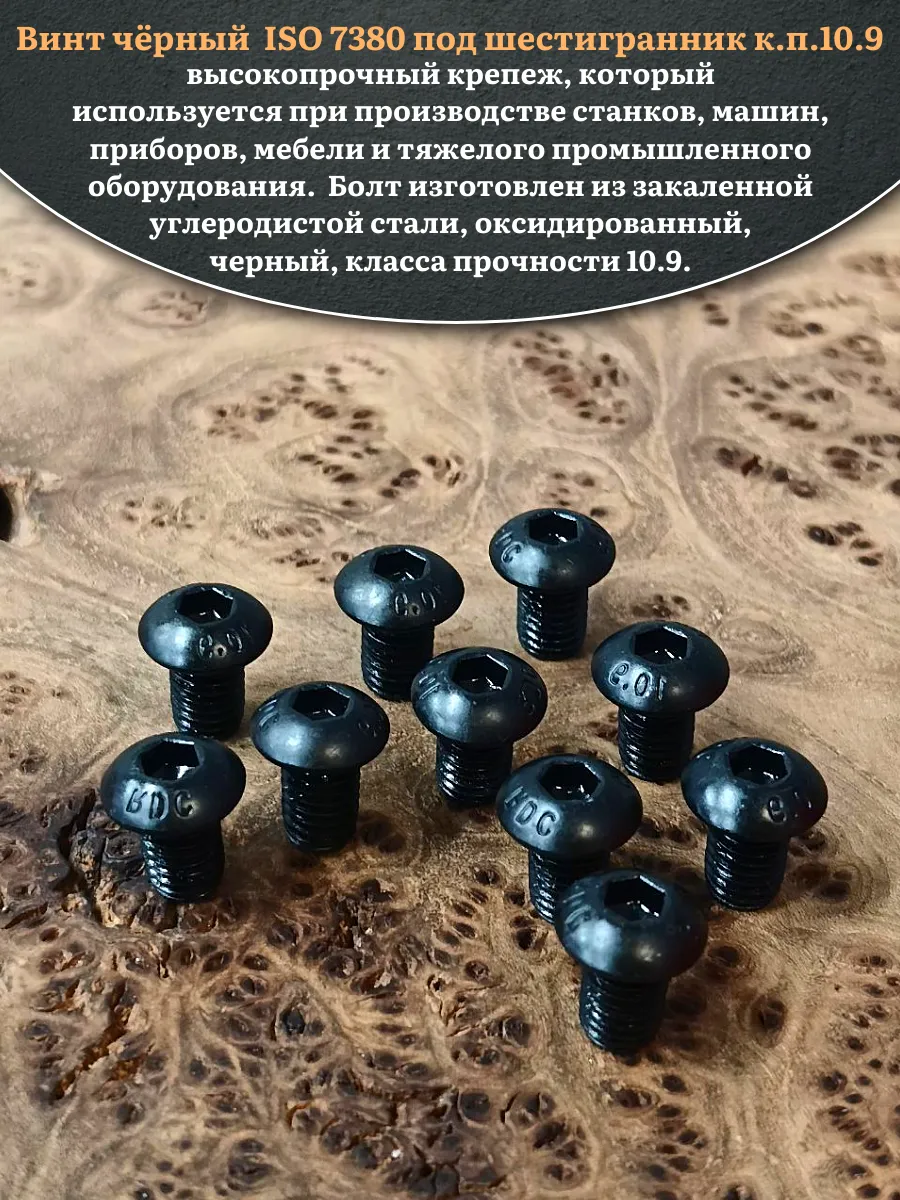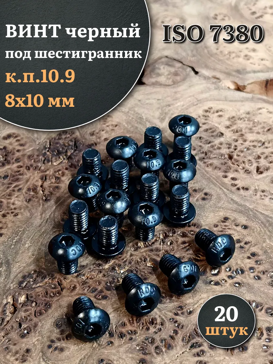 Винт чёрный М8х10 ISO 7380 под шестигранник к.п.10.9, 20 шт.