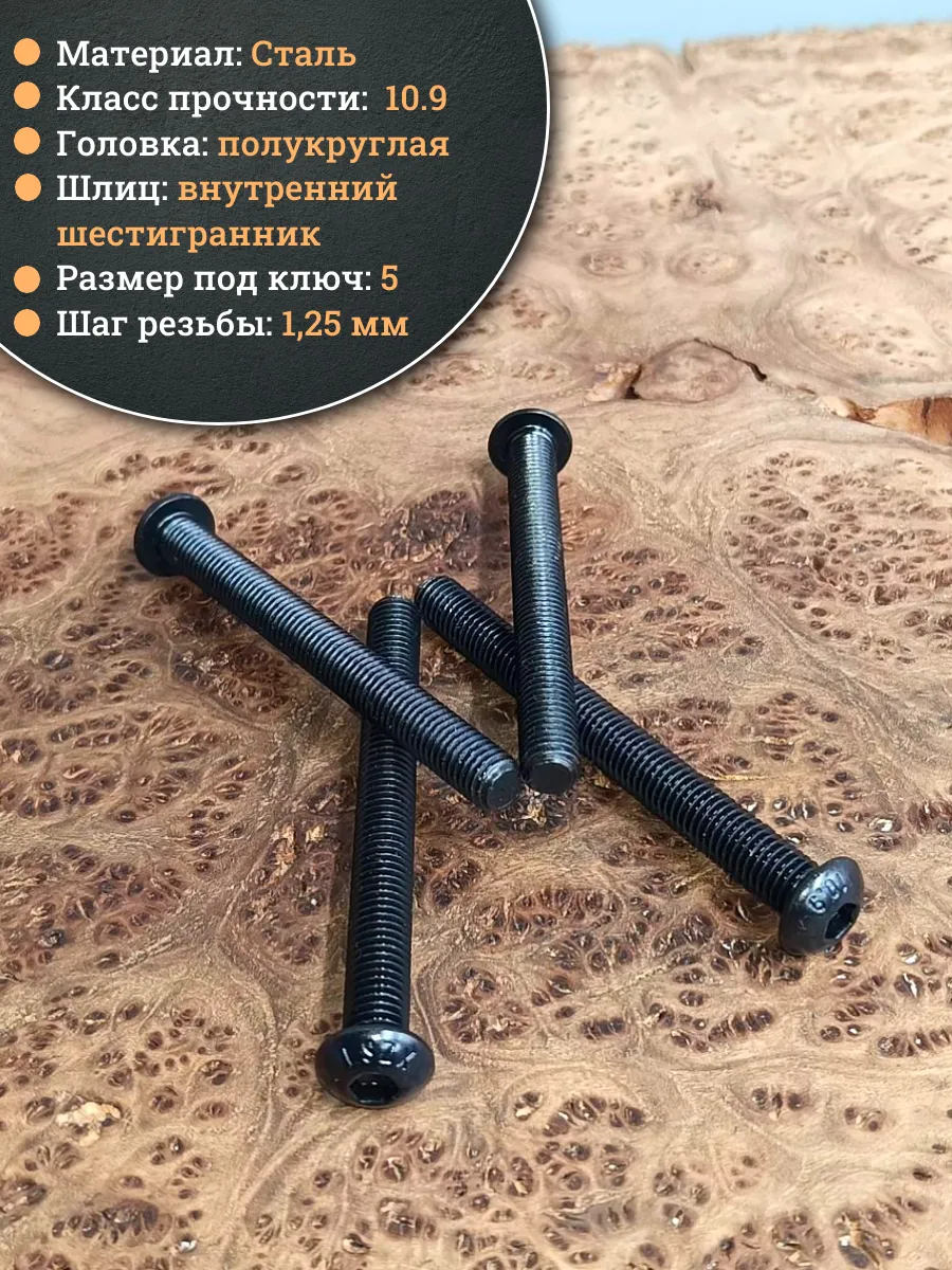 Винт чёрный М8х100 ISO 7380 под шестигранник к.п.10.9, 10 шт.