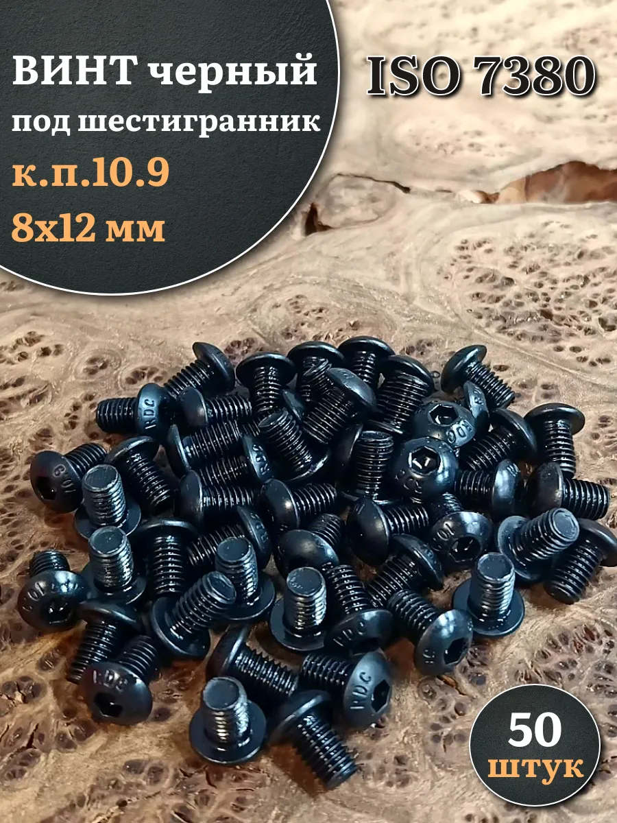 Винт чёрный М8х12 ISO 7380 под шестигранник к.п.10.9, 50 шт.