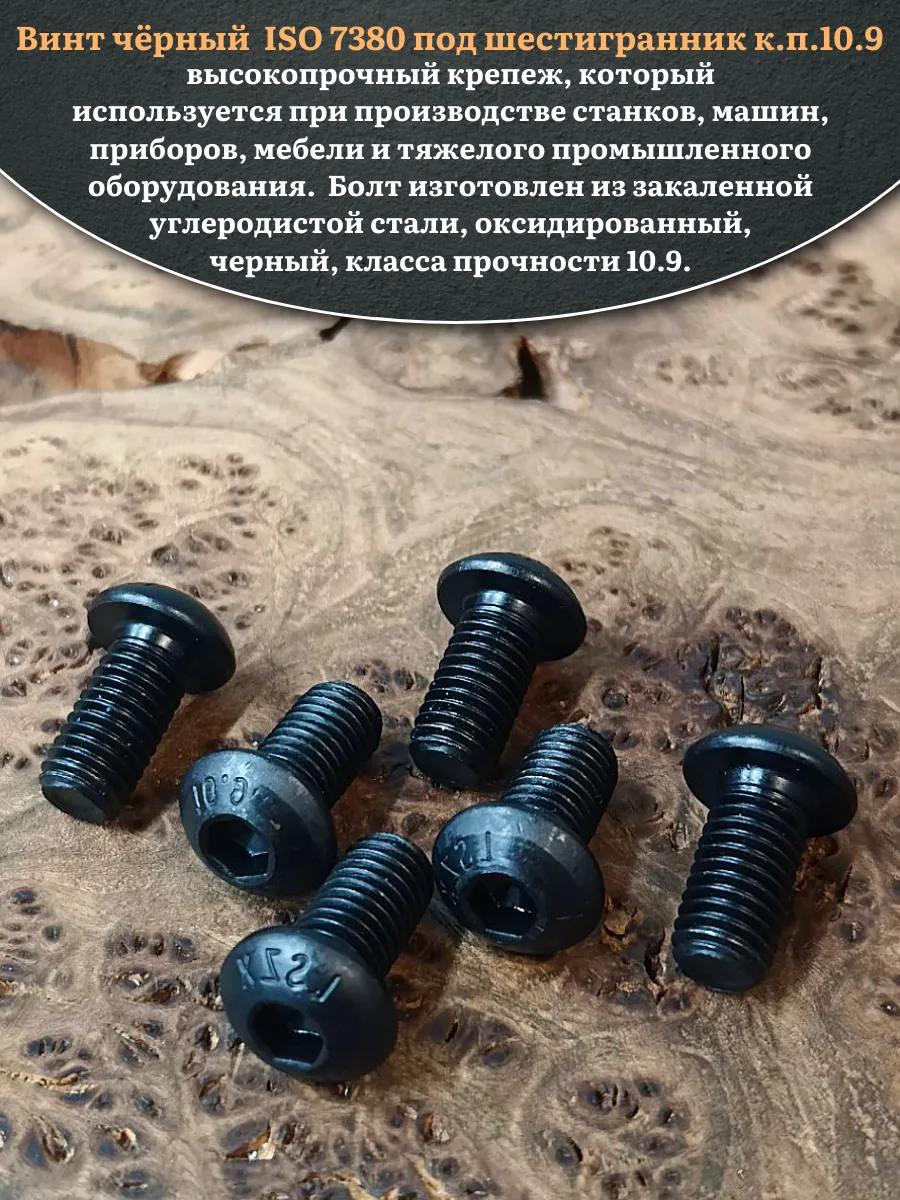 Винт чёрный М8х16 ISO 7380 под шестигранник к.п.10.9, 20 шт.