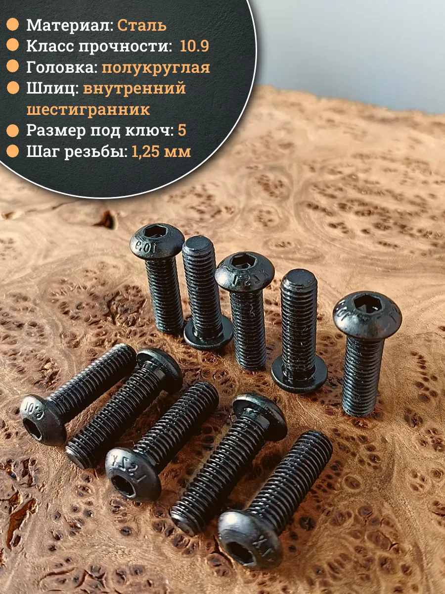 Винт чёрный М8х30 ISO 7380 под шестигранник к.п.10.9, 10 шт.