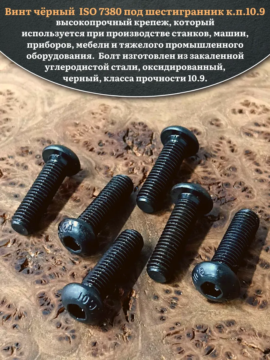 Винт чёрный М8х35 ISO 7380 под шестигранник к.п.10.9, 20 шт.