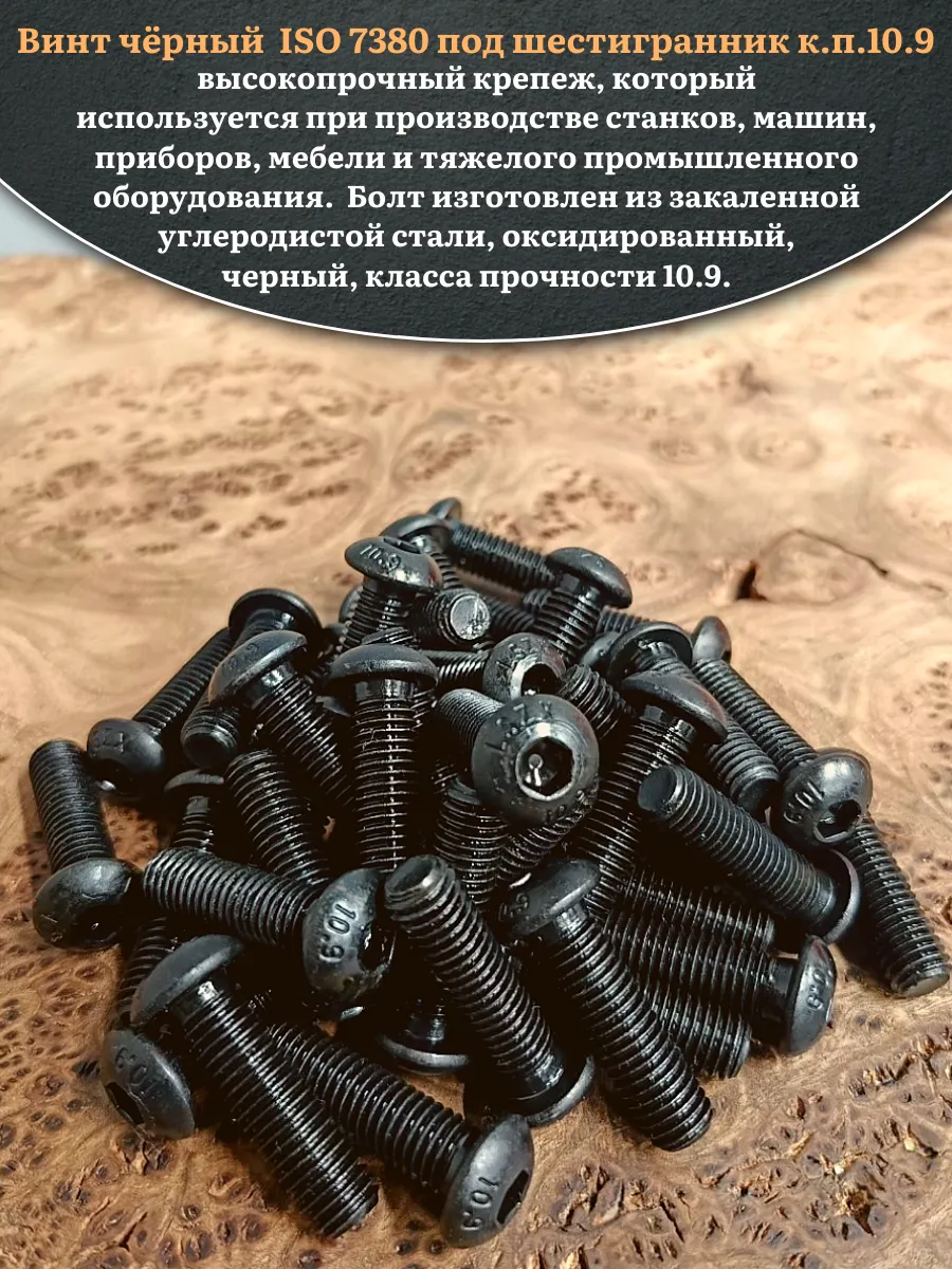 Винт чёрный М8х40 ISO 7380 под шестигранник к.п.10.9, 50 шт.