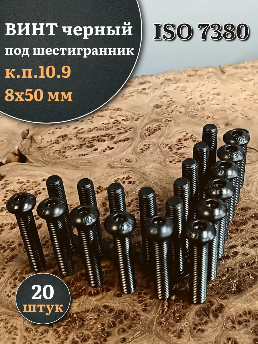 Винт чёрный М8х50 ISO 7380 под шестигранник к.п.10.9, 20 шт.