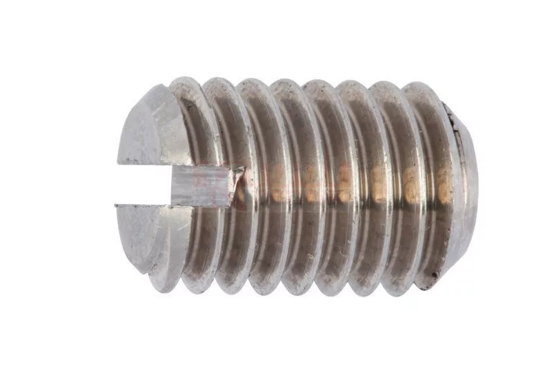 Винт установочный по стандарту DIN 551 классом прочности 14H является специализированным крепежным изделием, разработанным для точной и надежной фиксации компонентов в сборочных узлах. На верхнем торце винта расположен прямой шлиц, предназначенный для передачи крутящего момента с помощью плоской отвертки.