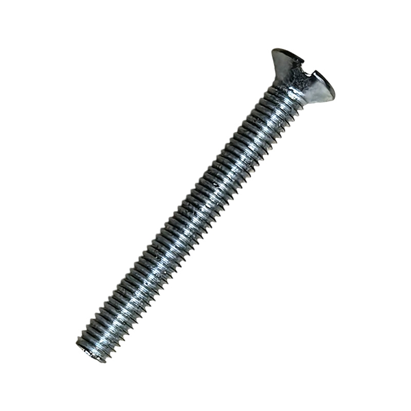 Крепеж по стандарту DIN 963 (ISO 2009) — это винт с потайной головкой и прямым шлицем. Он имеет вид металлического стержня с полной метрической резьбой и тупым концом. Благодаря разнообразию длин этот крепёж подходит для монтажа деталей разной толщины. В потайной головке есть прямой шлиц под плоскую отвёртку. Такой крепёж часто используют в машиностроении, строительстве и других отраслях производства для создания соединений, которые нужно периодически разбирать и собирать заново.