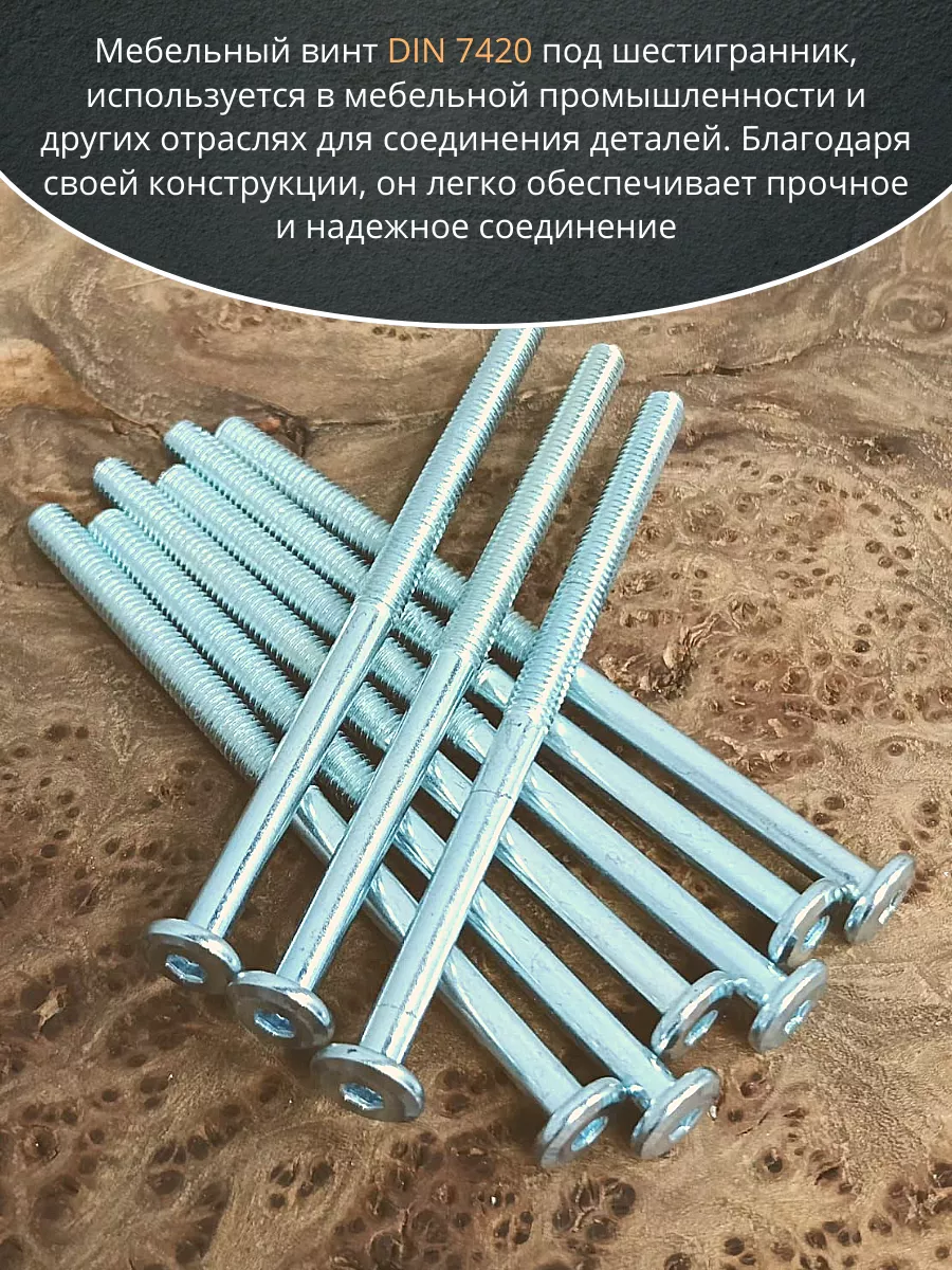 Винт мебельный 6х100 плоский под шестигранник DIN7420,20 шт