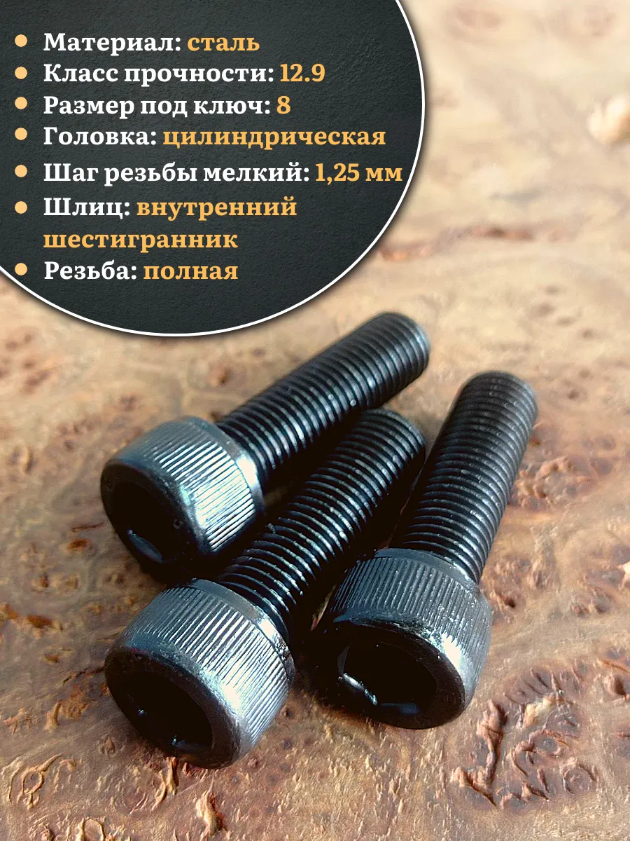 Винт мелкая резьба чёрный к.п.12.9 10х40х1,25 DIN912, 10 шт.