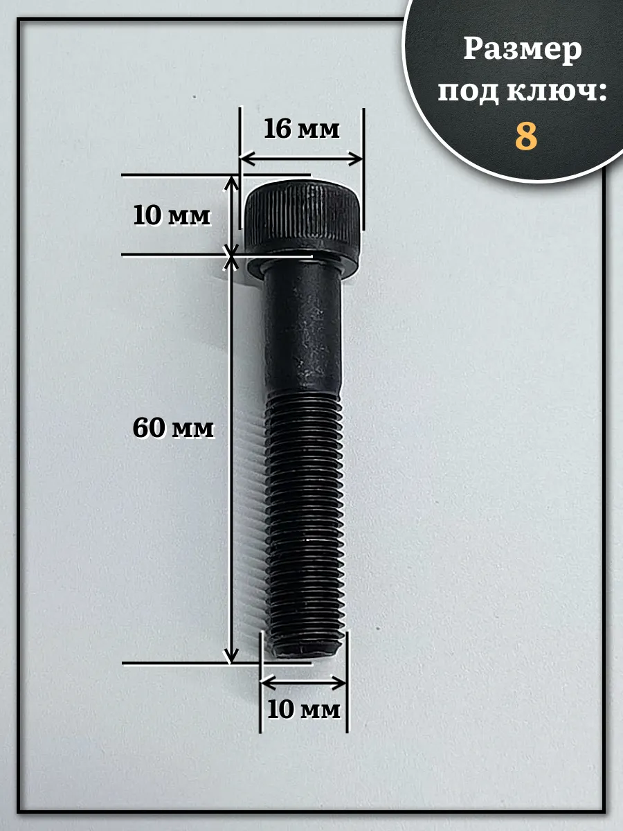 Винт мелкая резьба чёрный к.п.12.9 10х60х1 DIN912, 10 шт.