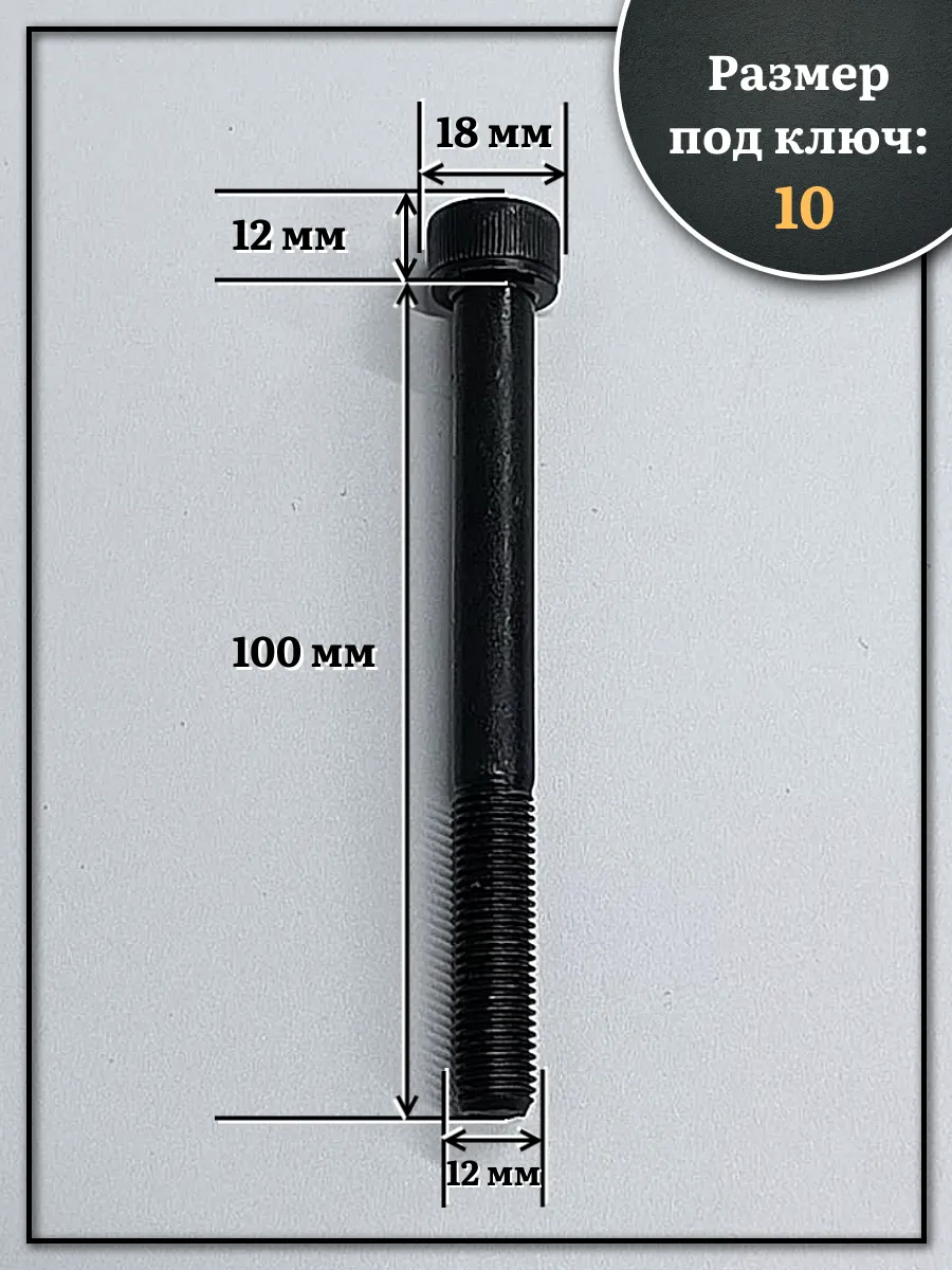Винт мелкая резьба чёрный к.п.12.9 12х100х1,25 DIN912, 10 шт.