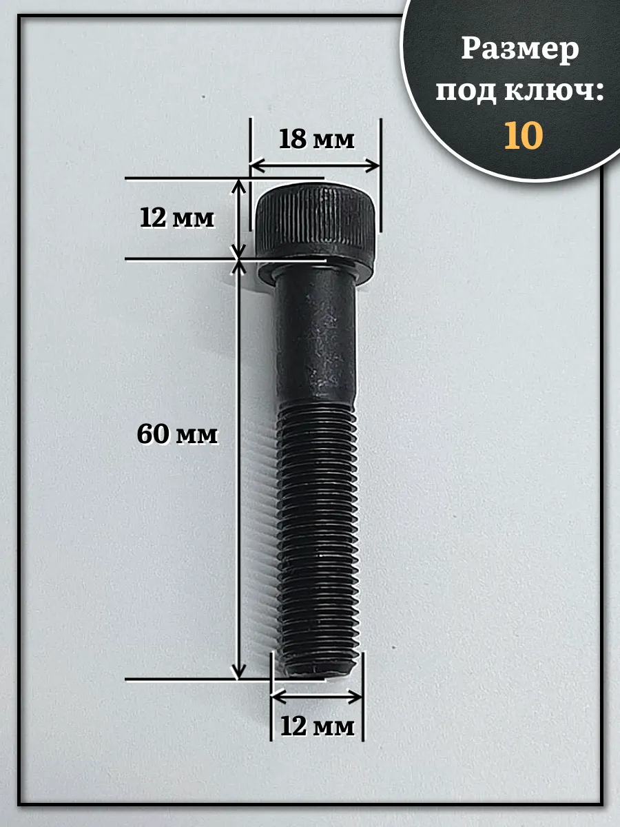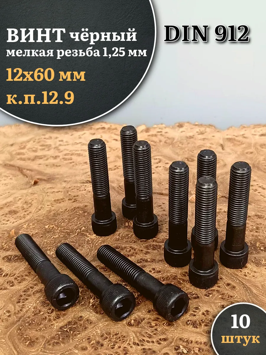 Винт мелкая резьба чёрный к.п.12.9 12х60х1,25 DIN912, 10 шт.