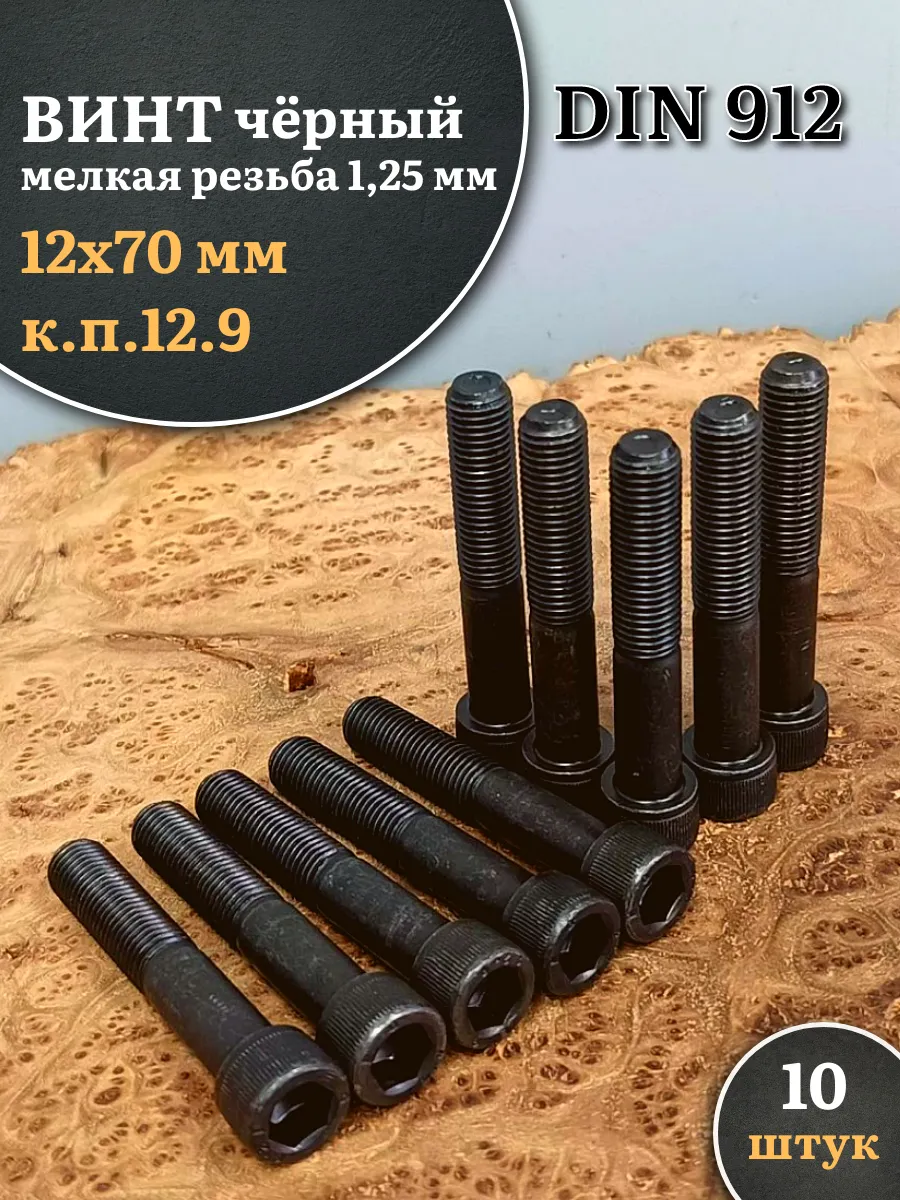 Винт мелкая резьба чёрный к.п.12.9 12х70х1,25 DIN912, 10 шт.