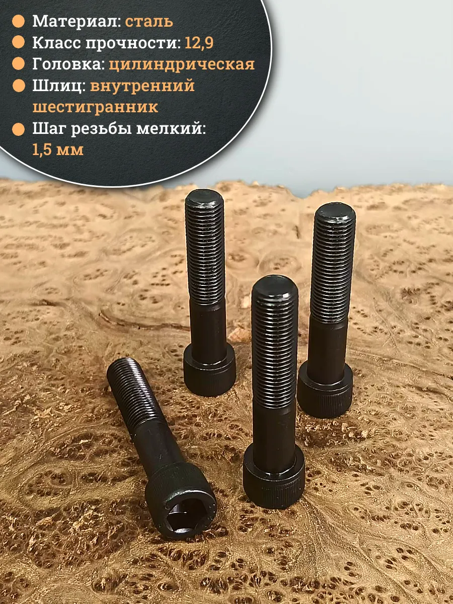 Винт мелкая резьба чёрный к.п.12.9 14х70х1,5 DIN912, 4 шт.